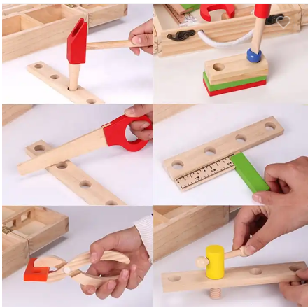 Toys portable repair tool toys for kids wooden tool set box toy for children pretend play