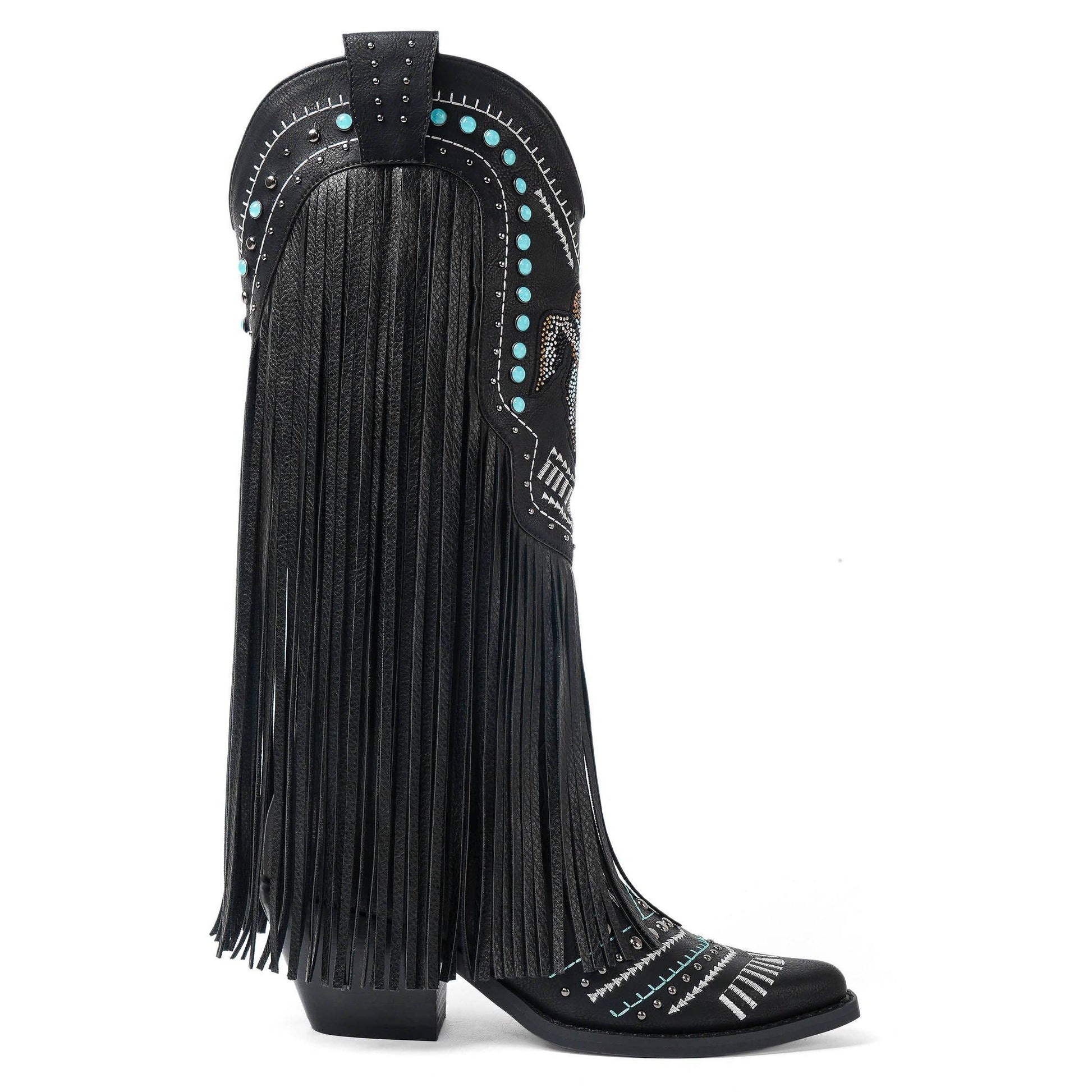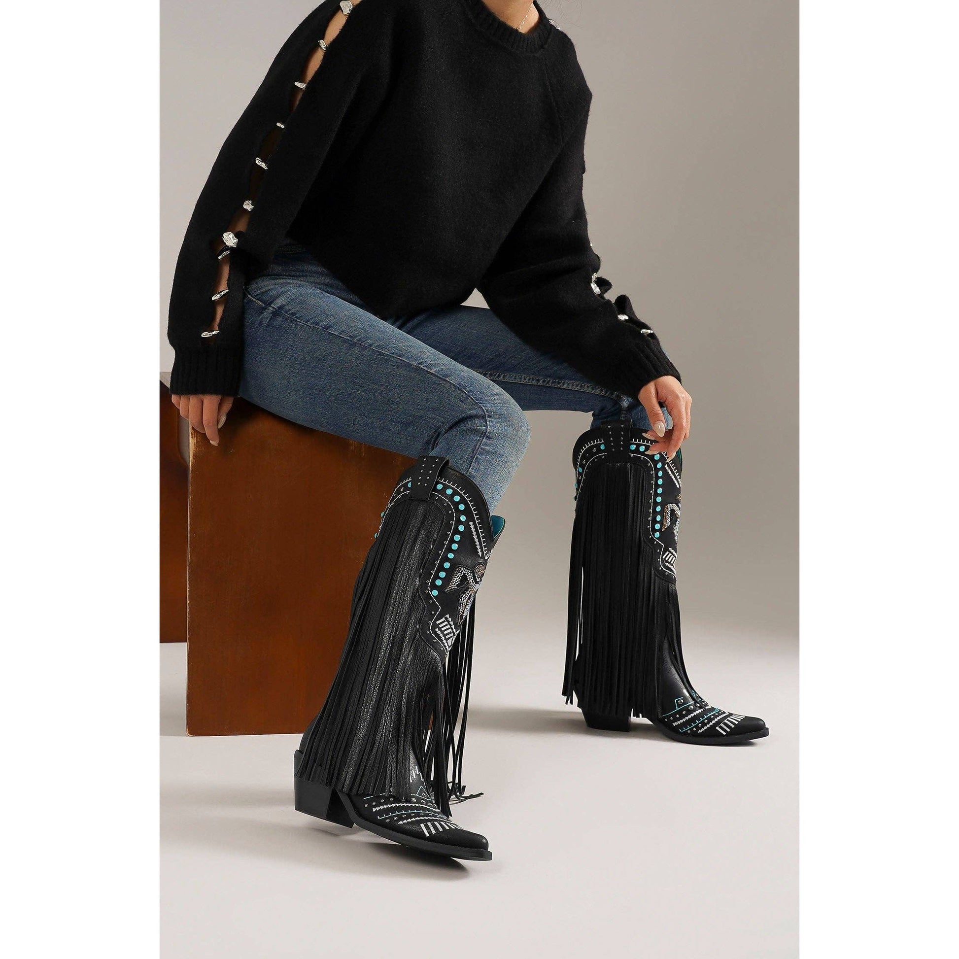 Fringe Western cowgirl Boots with Rhinestone Accents
