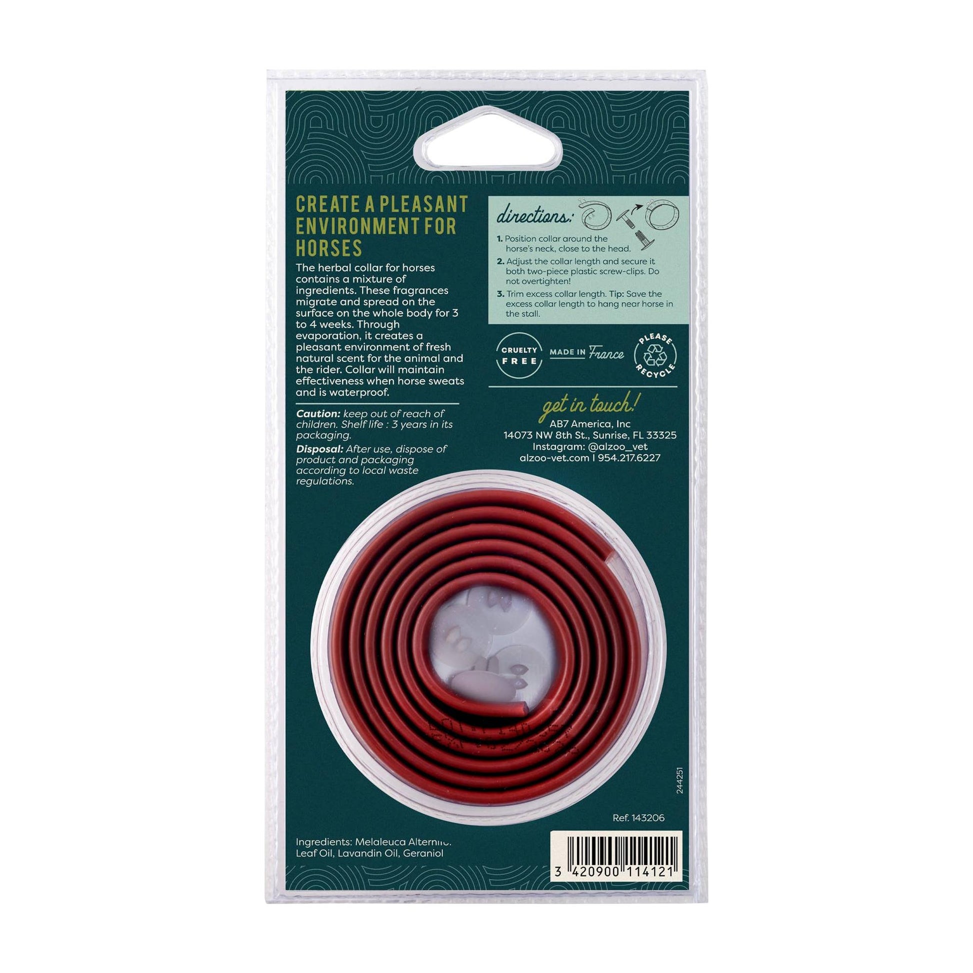 ALZOO™ Herbal Horse Collar CREATE A PLEASANT ENVIRONMENT FOR HORSES: The Herbal Collar for Horses contains a mixture of ingredients, including fragrances that migrate and spread on the surface of the whole body for 3-4 weeks. Through evaporation, it creates a pleasant environment of fresh and natural scent for the animal and the rider. *Horse Collar effectively protects & repels horseflies, fleas, and ticks *Proven safe and effective. *Laboratory tested for efficacy *Long-lasting; effective up to 30-day *Waterproof- The collar will maintain effectiveness even when the horse sweats. *SUSTAINABLE & SAFE. Safe, Cruelty-free, and made using recyclable packaging. Safety: The collar is equipped with safety pins allowing the collar to break away in case a branch or other object is getting stuck between the horse's neck and collar.
