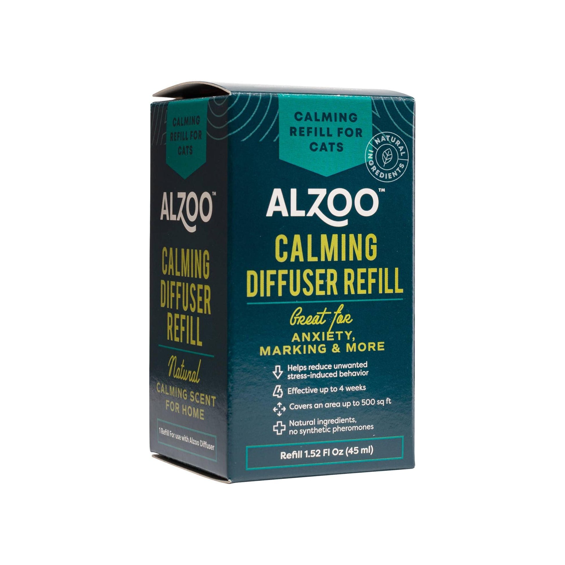 CALMING REFILL FOR USE WITH THE ALZOO™ DIFFUSER GREAT FOR ANXIETY, MARKING, & MORE: Like humans, Cats are susceptible to Stress & Anxiety caused by a variety of situations. This stress can result in excessive meowing, destructive behavior, marking, nervousness, & loss of appetite. Our Calming Diffuser helps provide comfort to cats experiencing stress due to changes in their environment and loud noises.