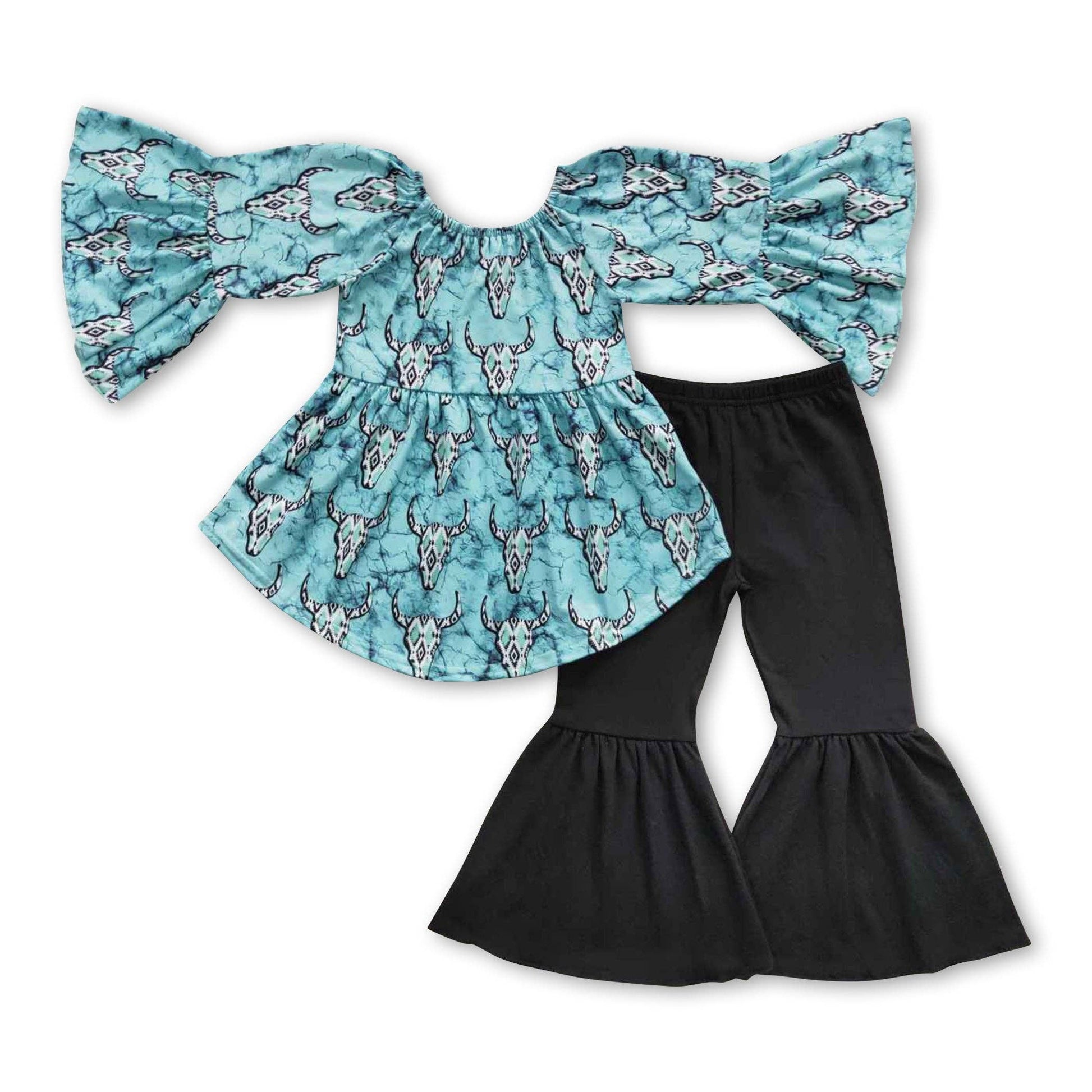 Aztec bull skull tunic pants girls clothing set