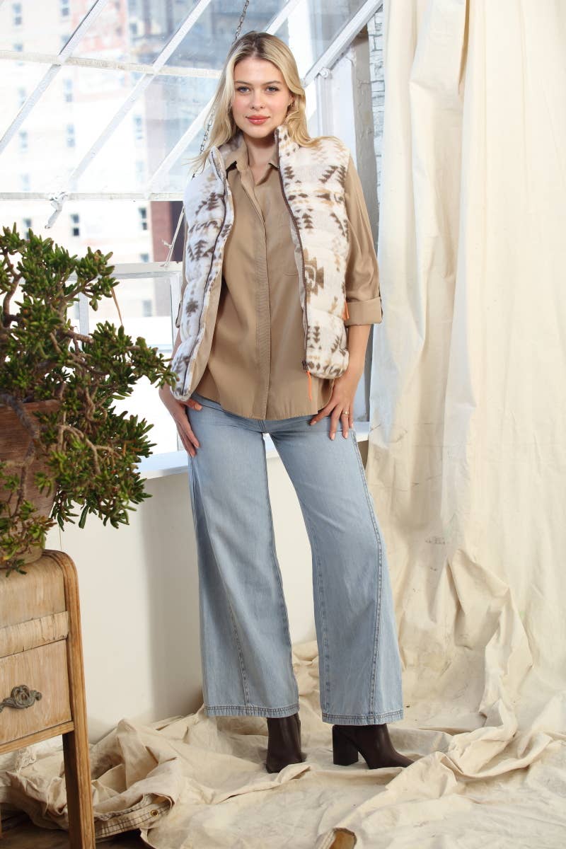 Aztec Printed Wool Like Jacquard Puffer Vest