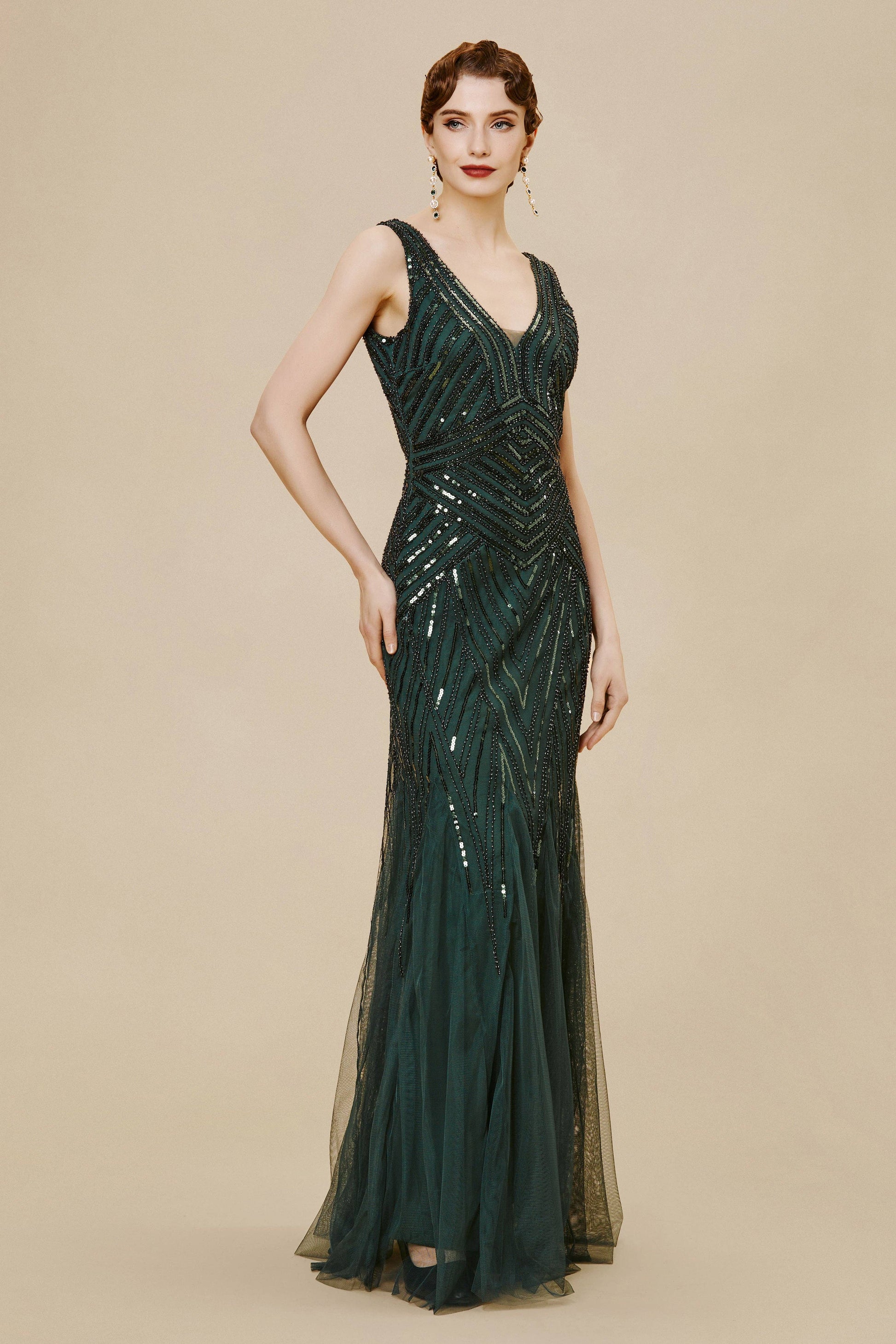 This elegant dress is classic vintage look for a modern woman. The eye-catching design features art deco print and unique vintage style which bring you back to the roaring twenties.