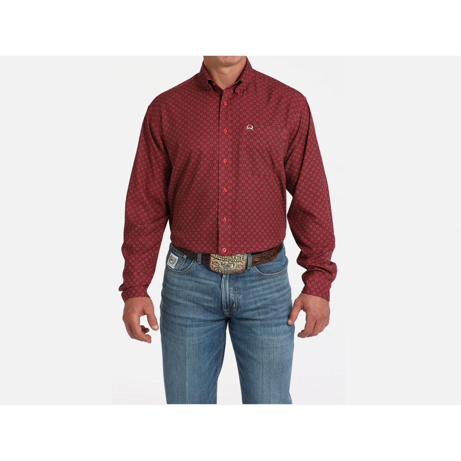 Cinch Men's ArenaFlex Red Print Long Sleeve Button down Western Shirt