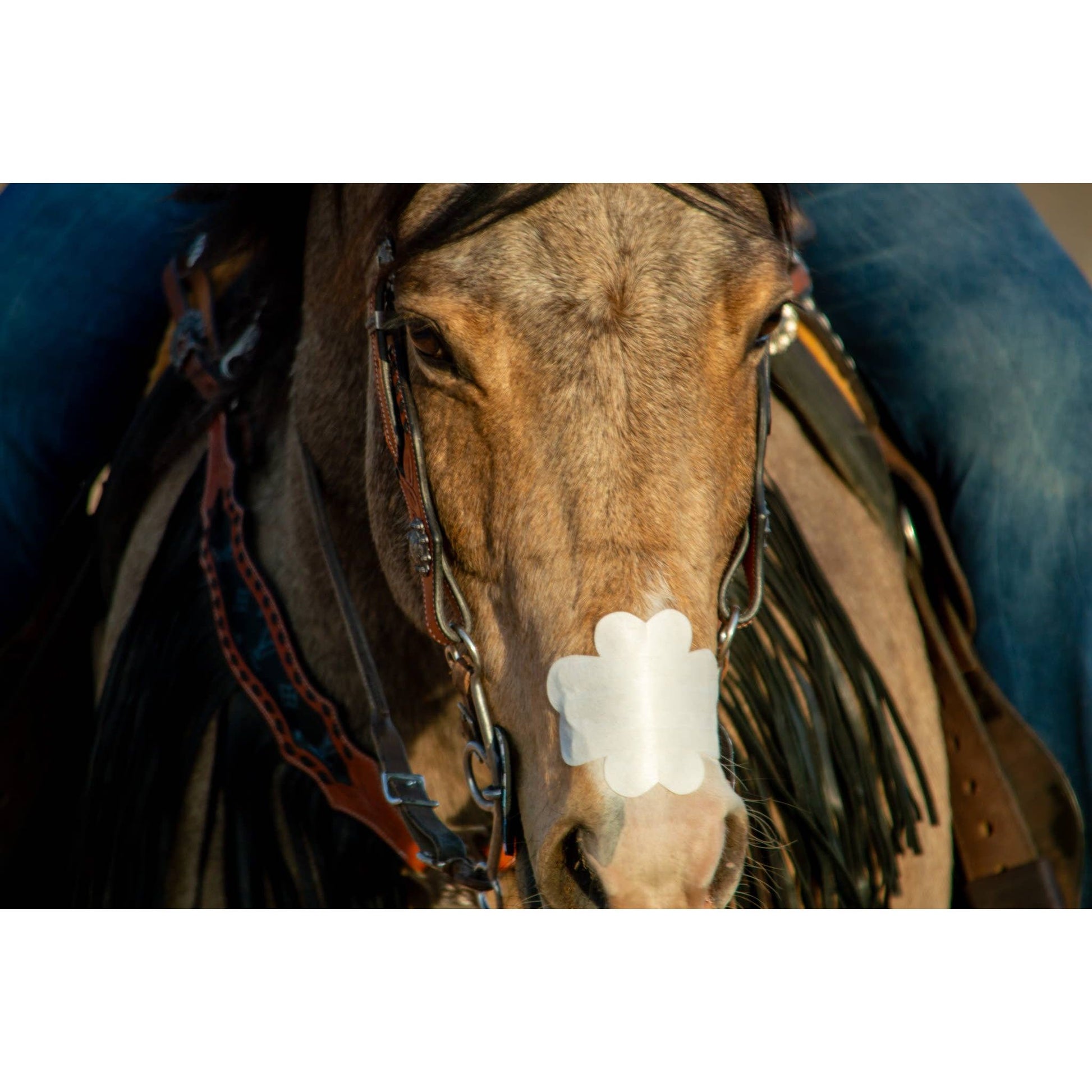 Created by lifelong barrel-racing friends, the EquiBreathe™ Equine Nasal Patch is a single-use, external support patch that sits securely across the nasal bridge without pulling sensitive hair. It uses a medical-grade, water-soluble adhesive that releases cleanly with a damp cloth, making removal quick and gentle. Every patch ships in biodegradable packaging and is offered in an ever-growing range of solids and limited-edition prints, letting riders match team colours or add a splash of personality.