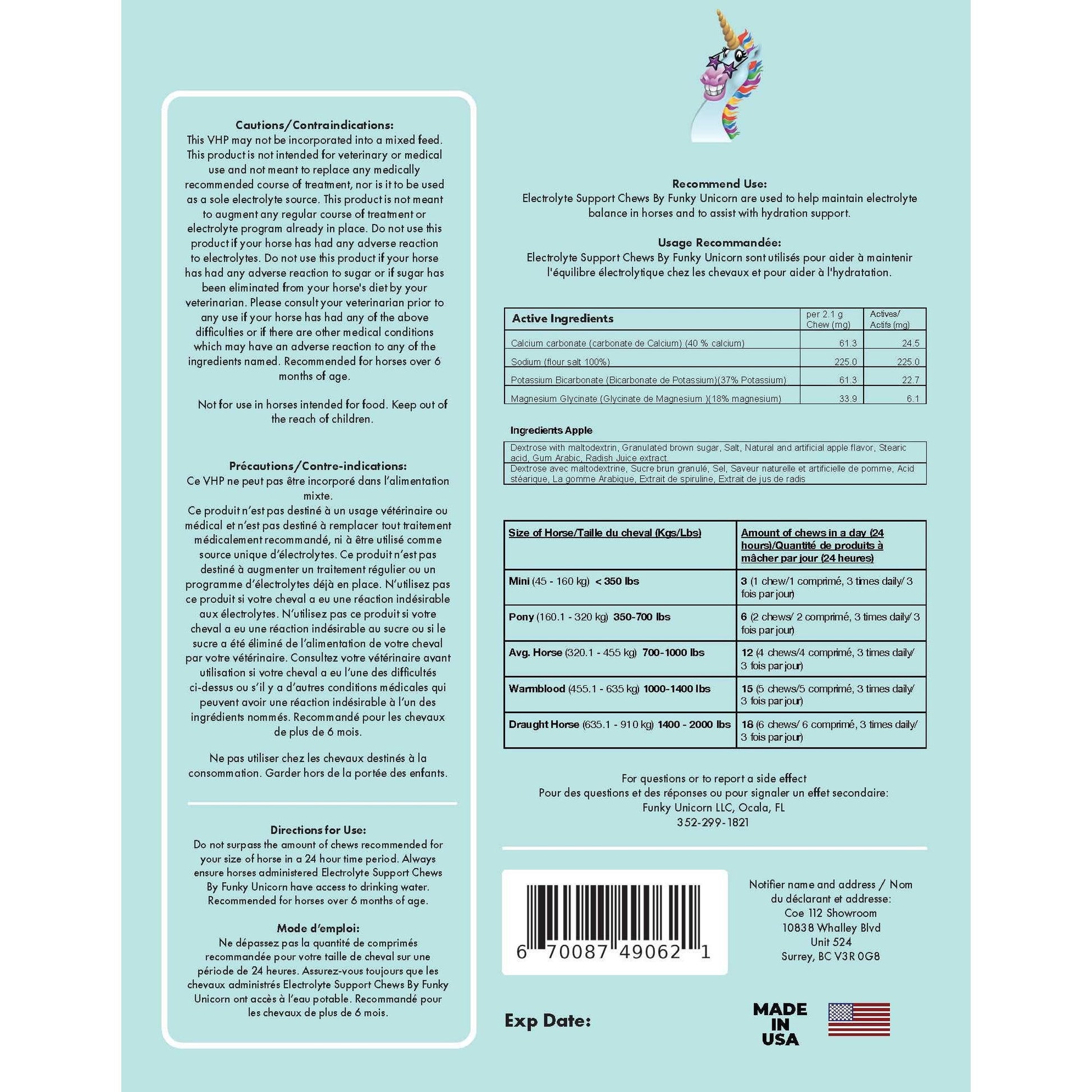 Electrolyte Support Chews by Funky Unicorn are easy to give horses anytime, anywhere!