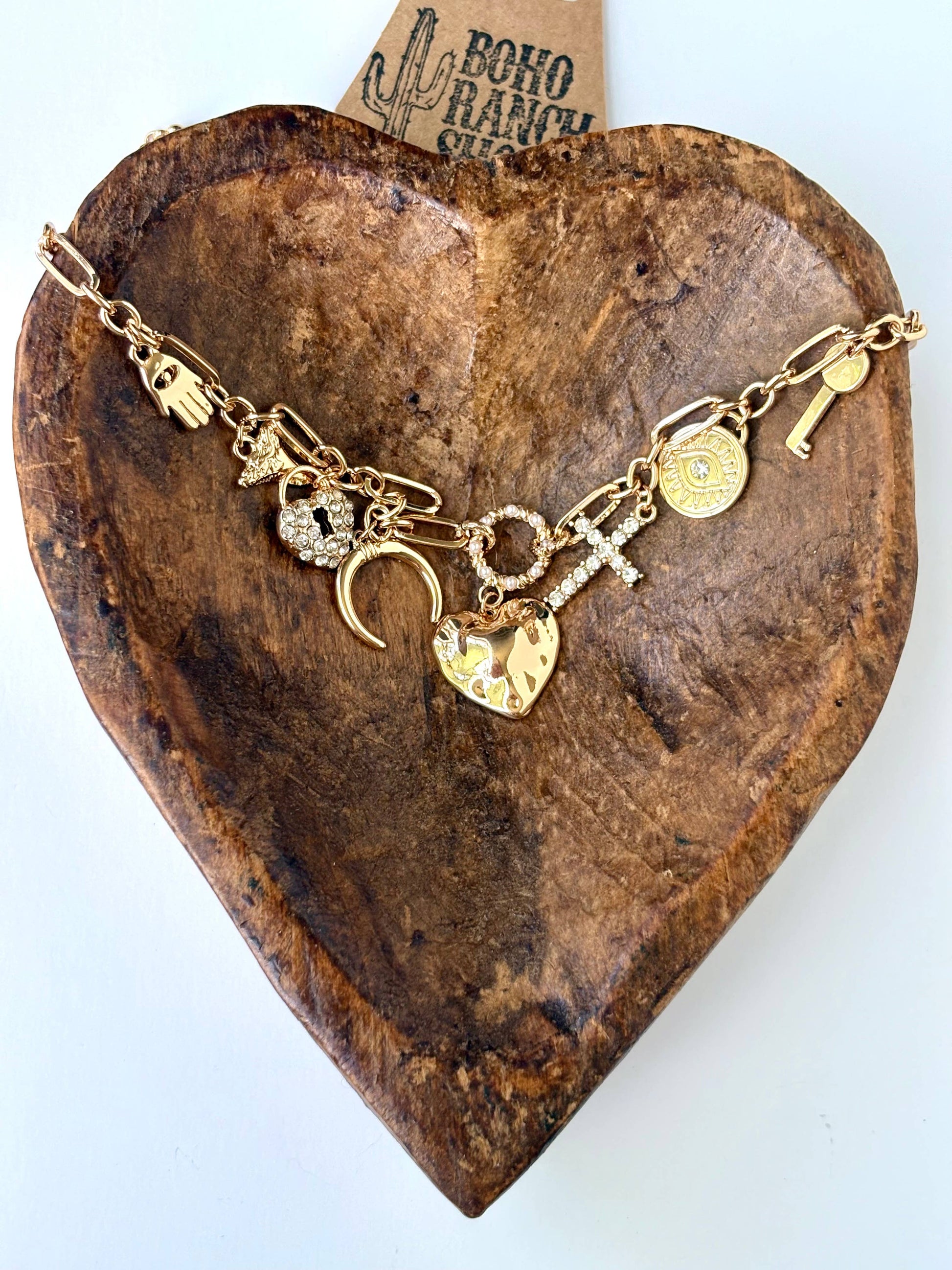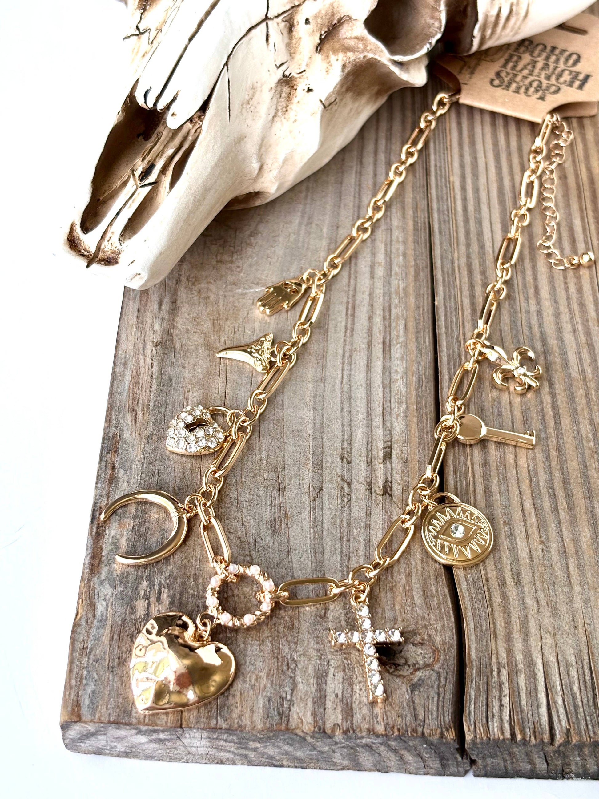 Gold Plated, Multi Charm w/ Rhinestone