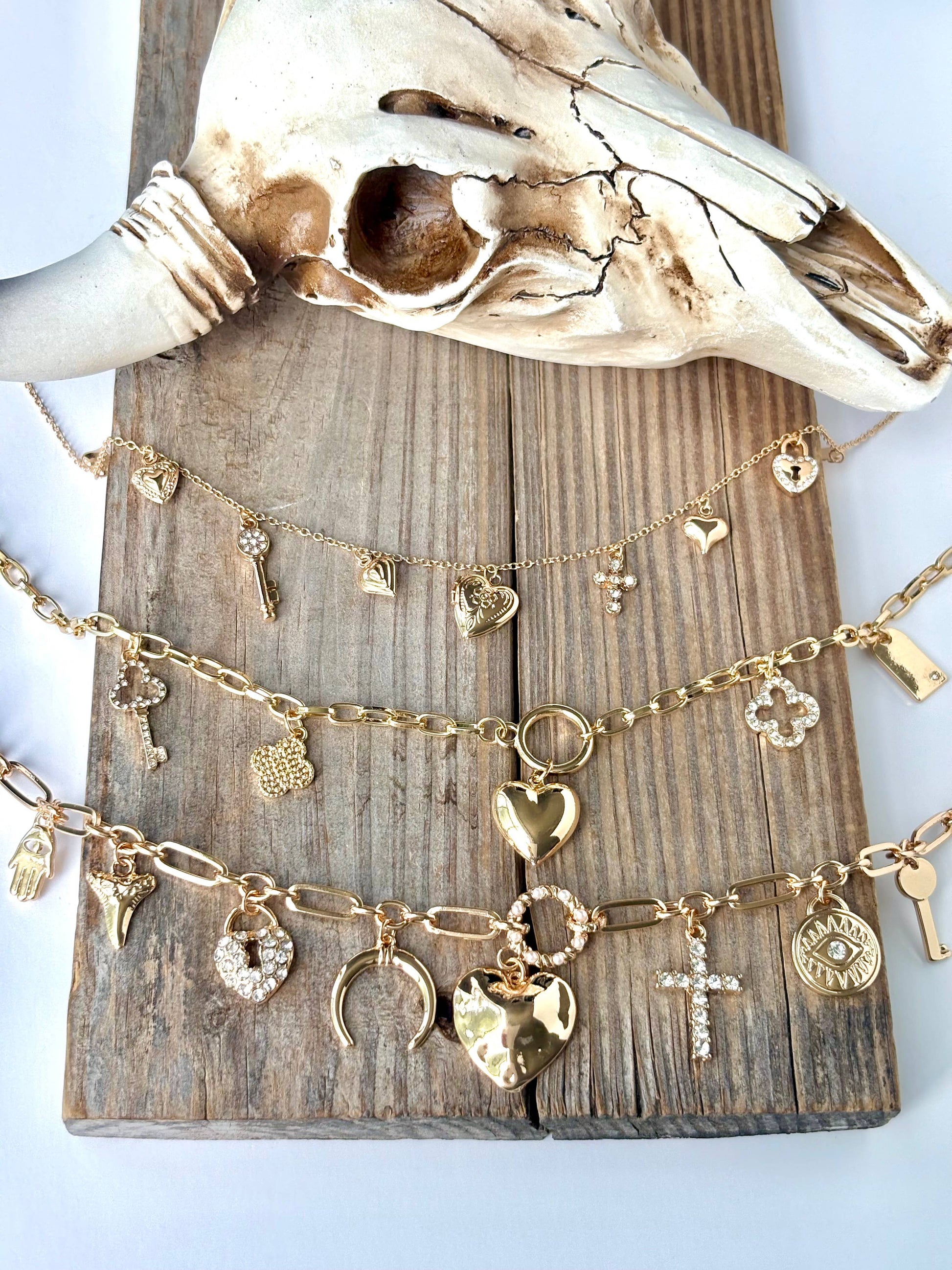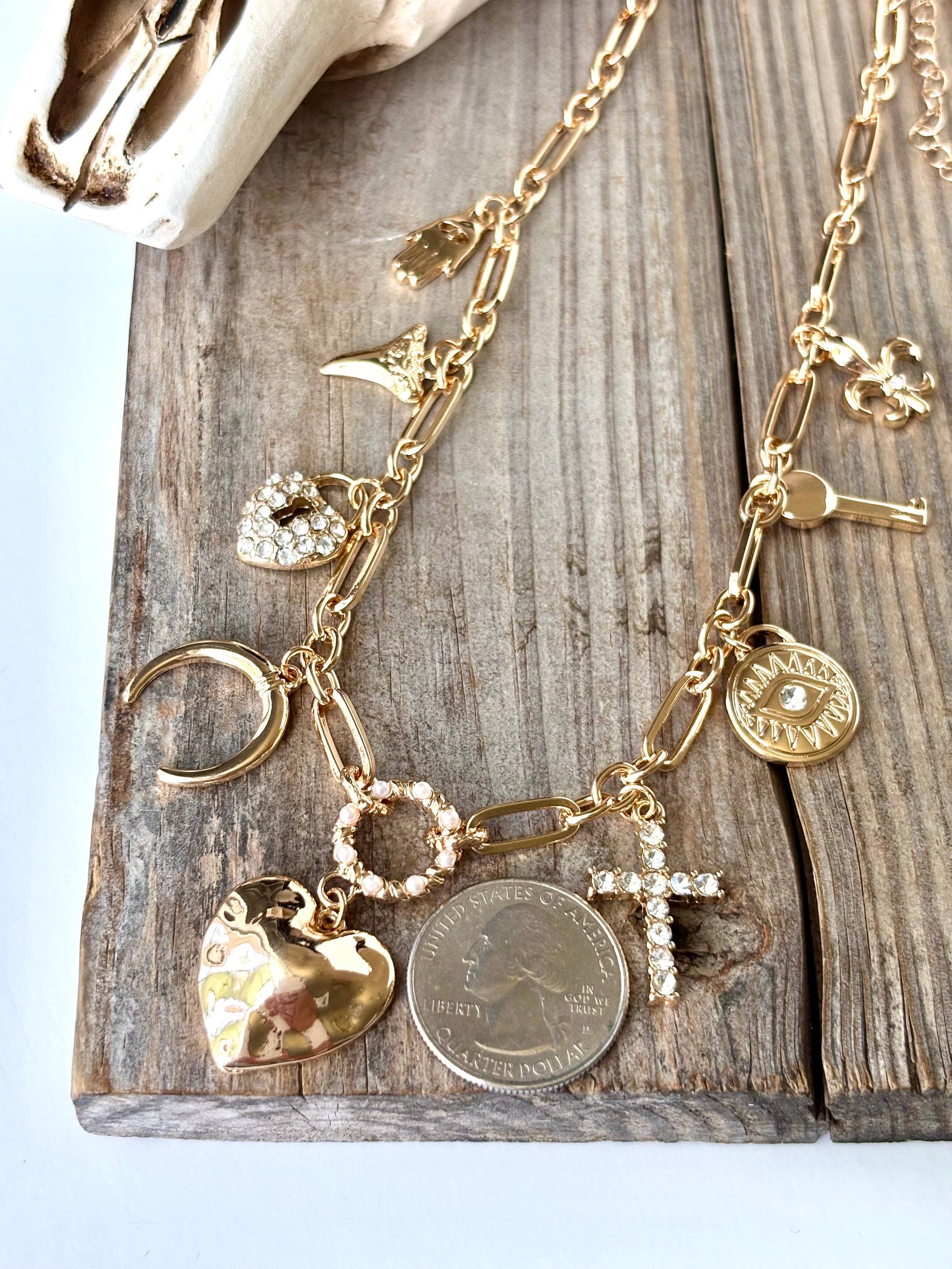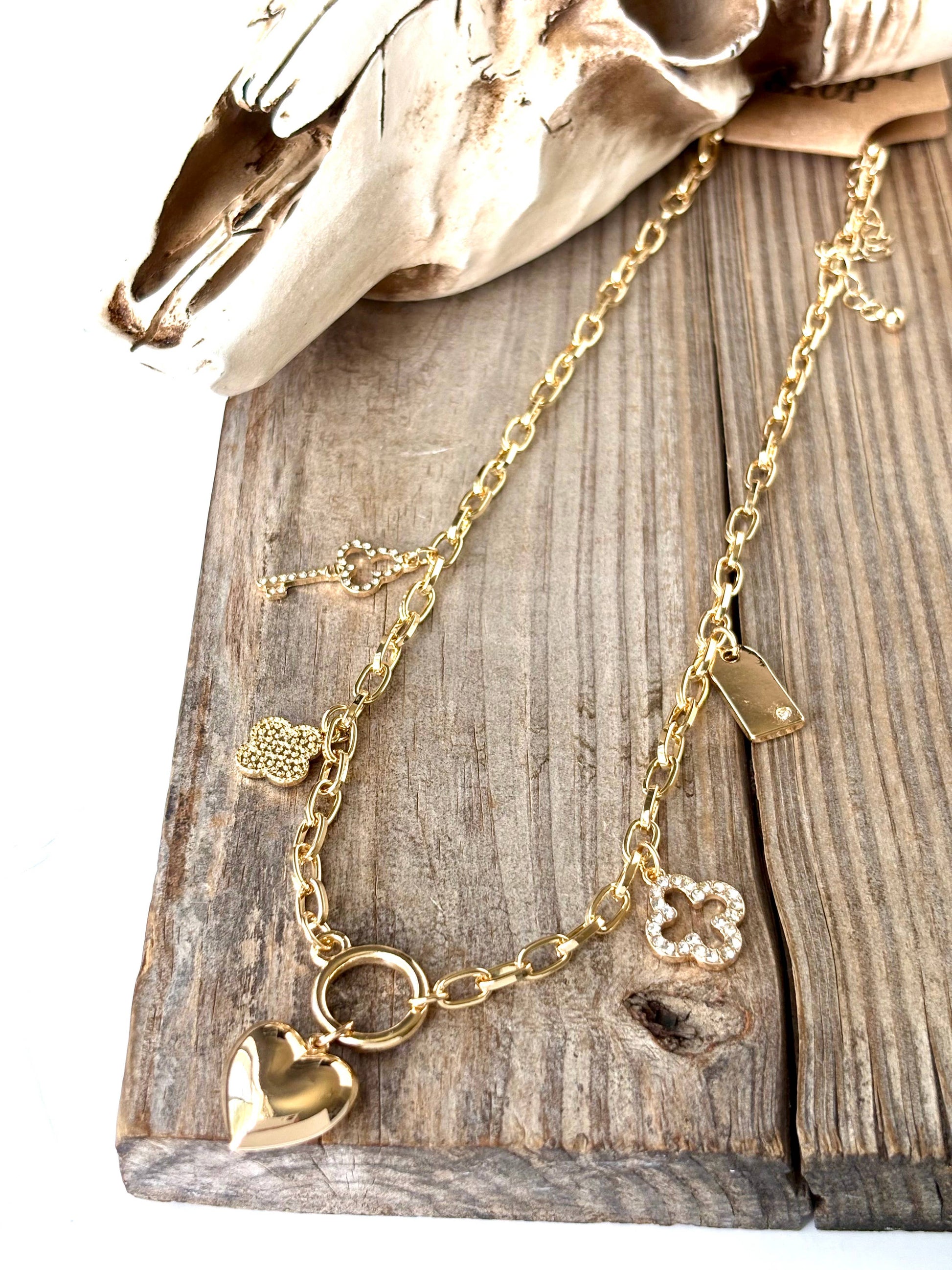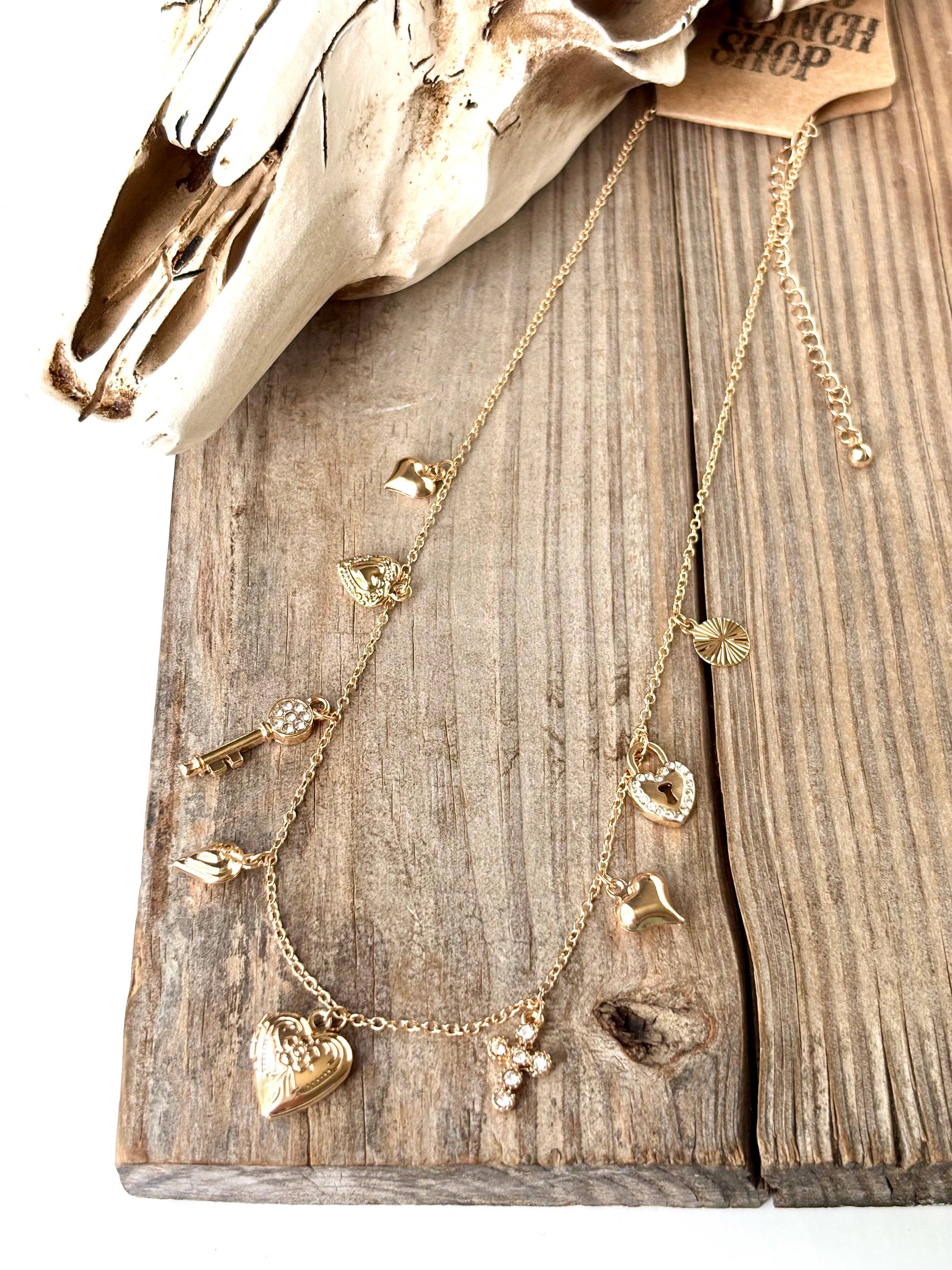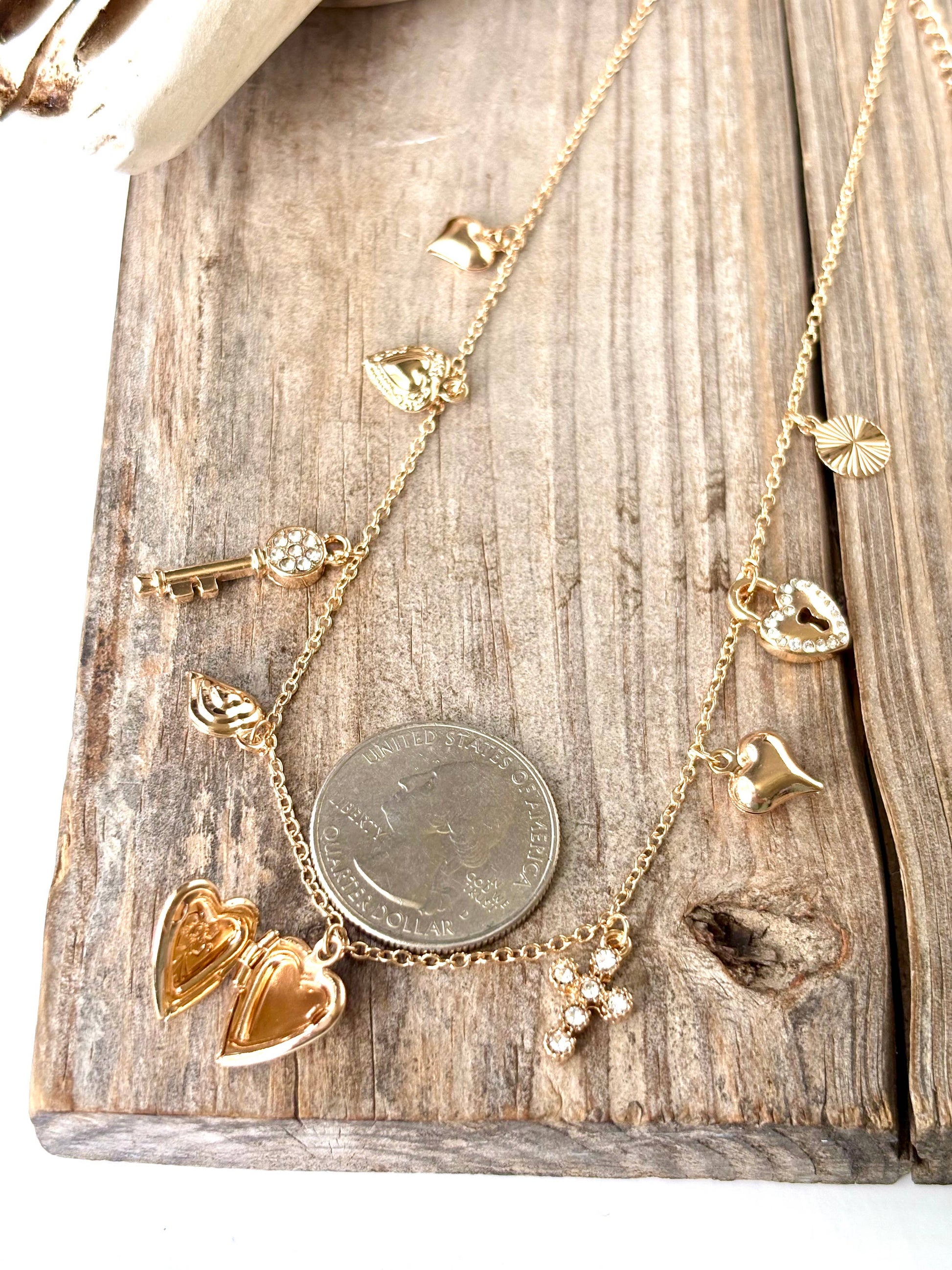 Heart Multi Charm Link Chain Necklace