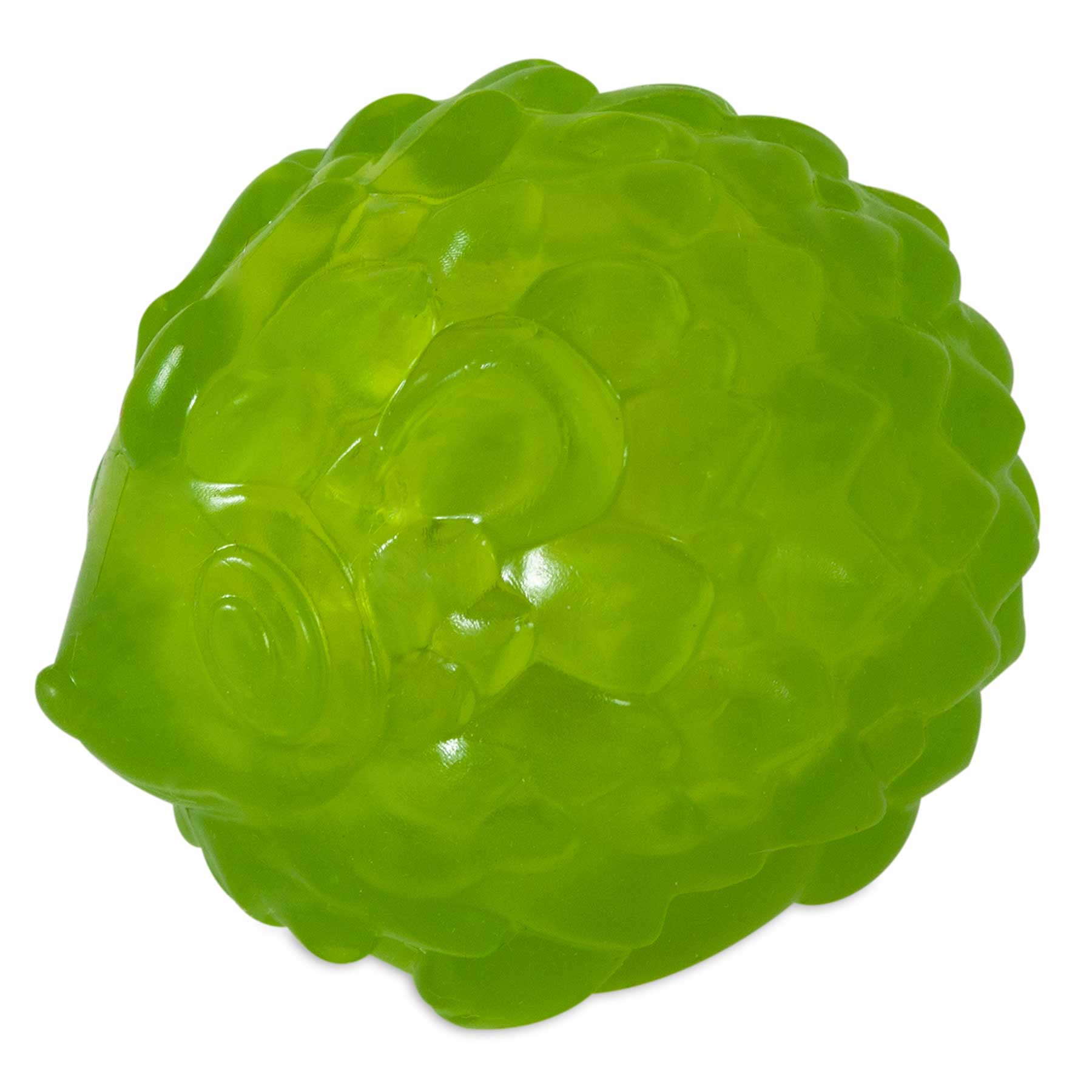 The JW® Puppy Toy Collection is designed for puppies and their unique needs. More than a toy, we focus on enriching playtime through intelligent designs and creating fun discoveries for puppies as they explore their new world. Designed just for smallmouths, the JW® Hedgehog Squeak-ee™ Ball Puppy Toy is perfect for puppies during the teething phase. Made from green translucent, durable, textured rubber this toy massages your puppy's gums and is gentle on your puppy's mouth as they teethe and chew on this toy. Great for fetch, the Hedgehog Ball has a squeaker on the inside to keep your puppy's attention and bounces in an erratic path that engages your puppy's instincts. For safety, the Hedgehog Ball features a patented design that makes the squeaker fall inside the toy instead of out, helping to prevent choking hazards. Made just for puppies, the JW Hedgehog Squeak-ee Ball is the perfect toy to add to your puppy's toy collection.