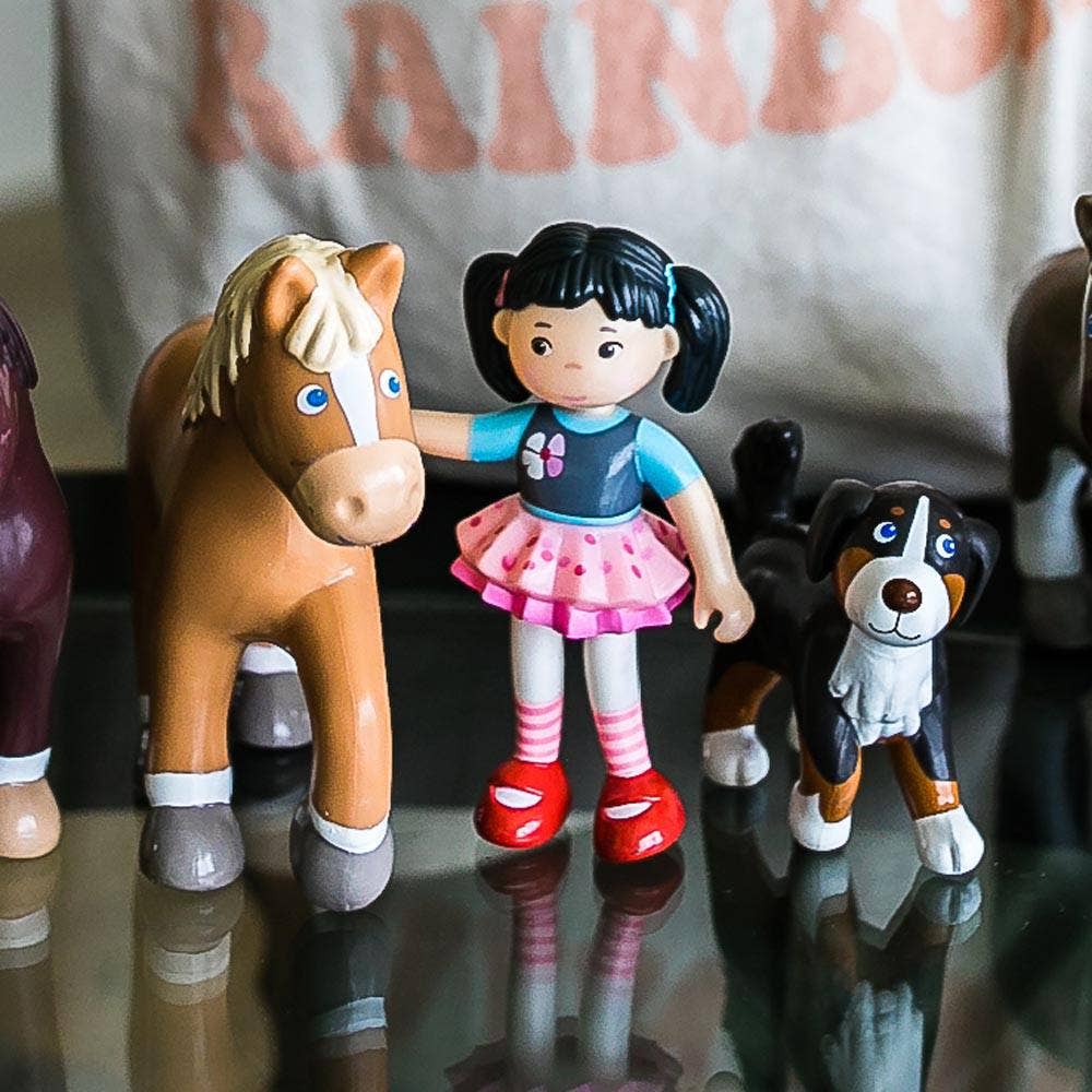 This beautiful brown steed is ready to gallop off into the sunset with the rest of the Little Friends crew. Measuring 4.5" tall with flexible legs so he can trot around the pasture with ease.