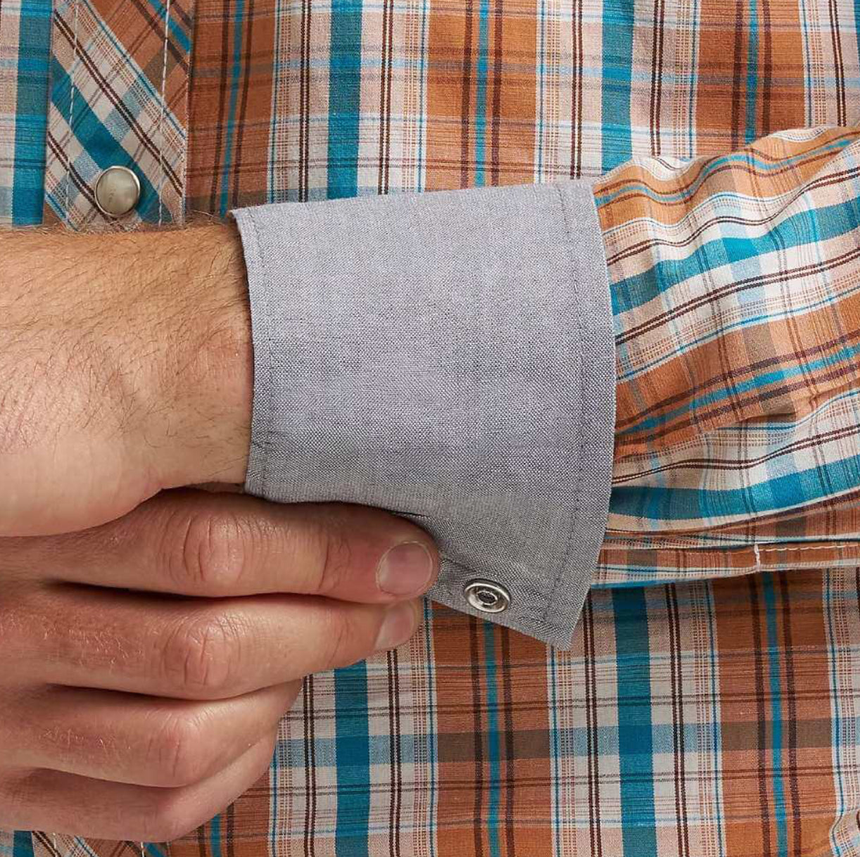 Essential Wrangler Mens 20X® Competition Western Shirt Rustic Brown Madras. Combining iconic styling with a contemporary look, the Men's 20X® Competition Advanced Comfort Snap Front Shirt keeps you comfortable both in and out of the arena. This long-sleeve snap shirt features a spread collar, pointed yokes, two snap flap pockets, a full snap closure, and a classic fit. Plus, it's made of cotton and stretch for premium performance under pressure.