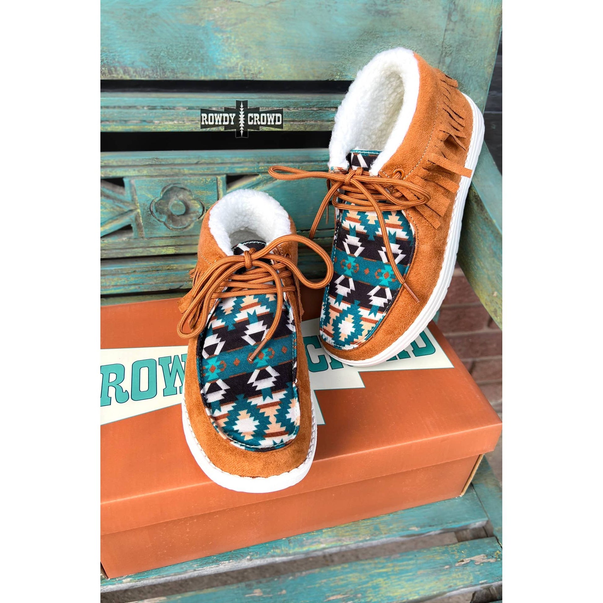 The Mesquite Moccasins are the epitome of comfort and cute! with its fun aztec print and comfortable lining. We are simply obsessed! Cold weather doesn't have to mean drab shoes any more! Make sure to grab them while you can because they are sure to be a fan favorite.