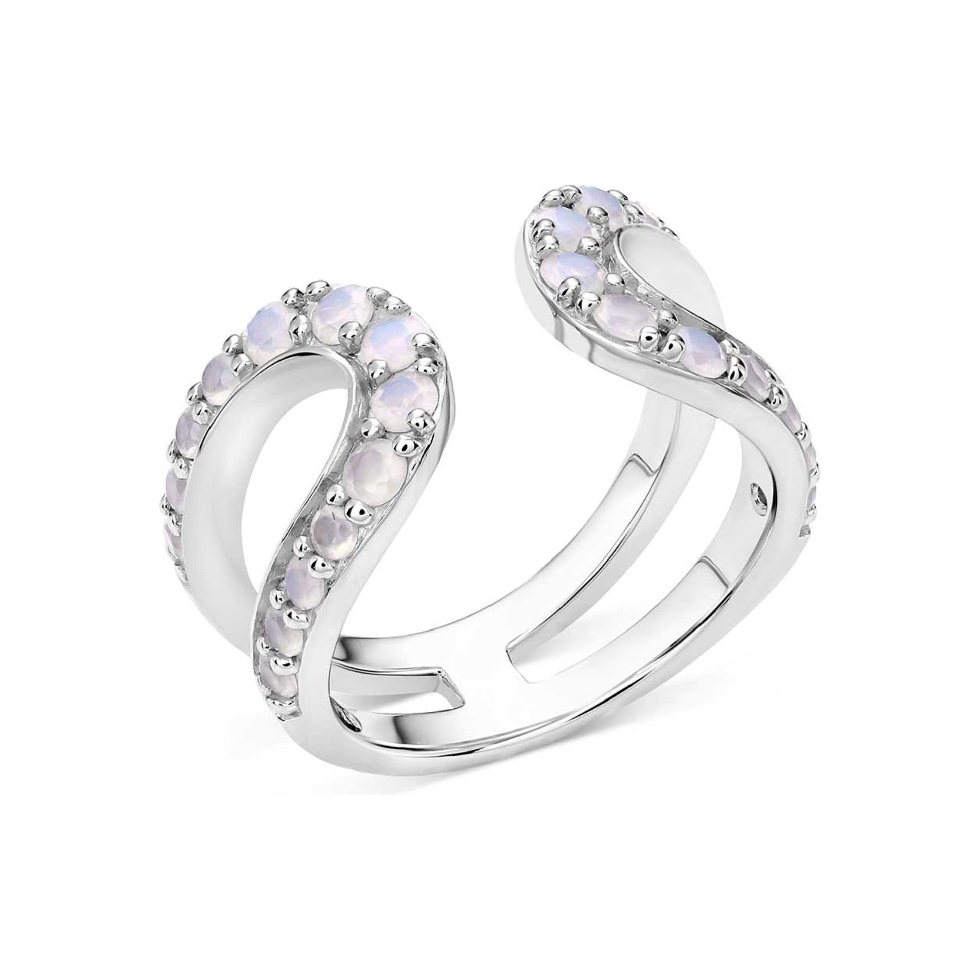 Stay in the loop on trends with this crafted white opal ring. The white stones are seated along the open cut loops. The back half of the ring is a smooth surface for added comfort. This ring is sized for one size fits most.