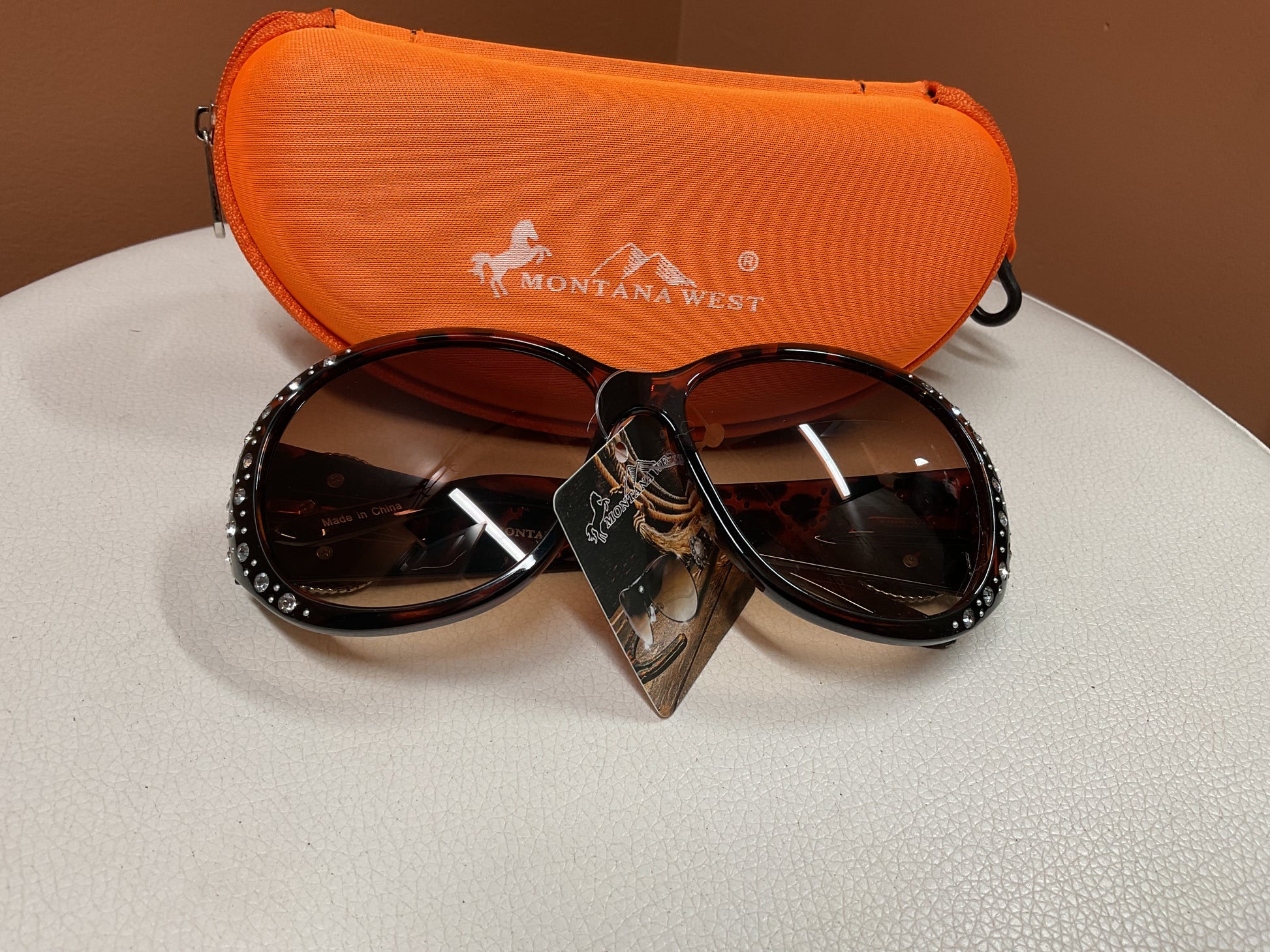 Montana West Sunglasses with Case, Rhinestone Skull, X002R8QG9D
