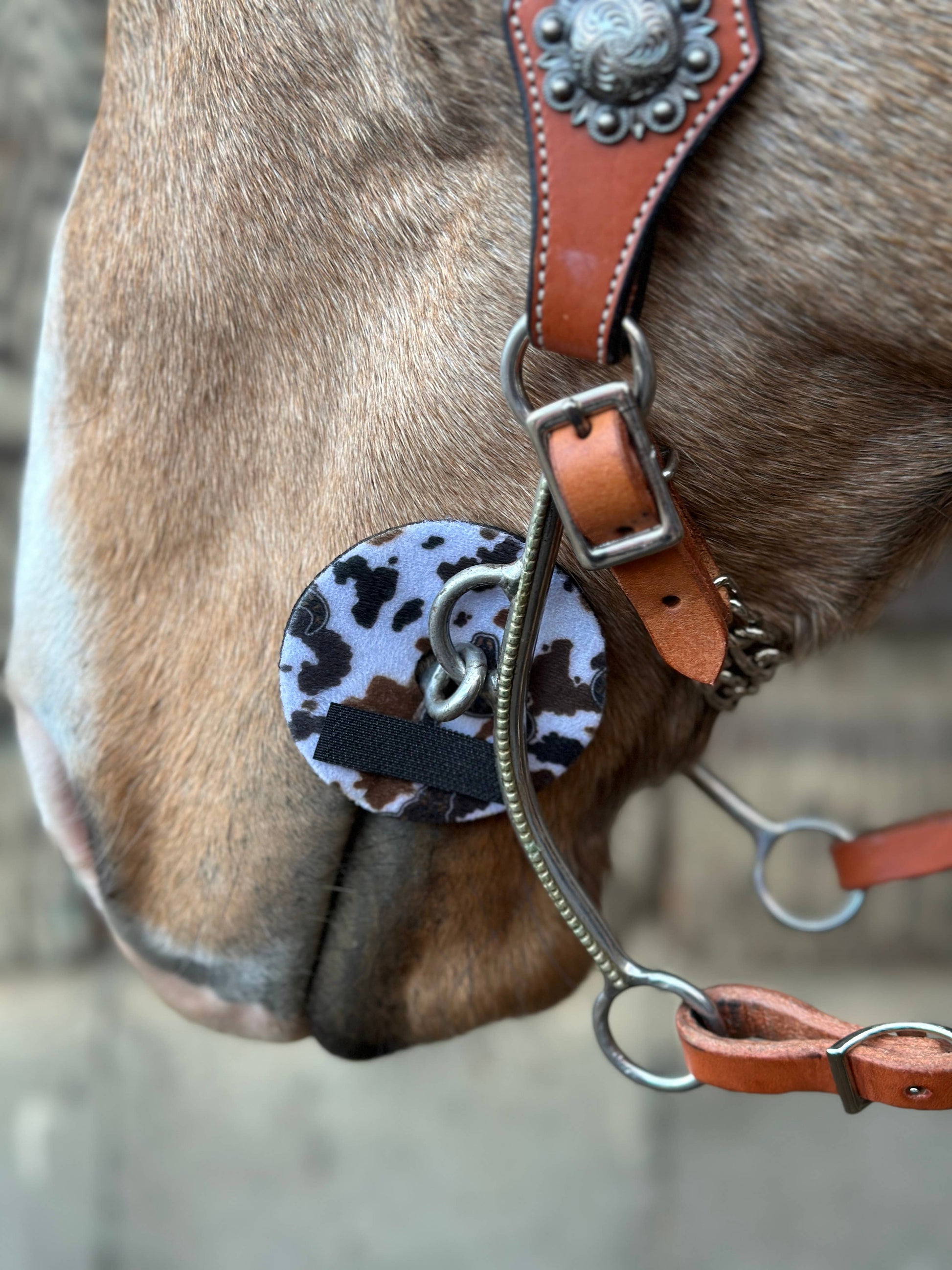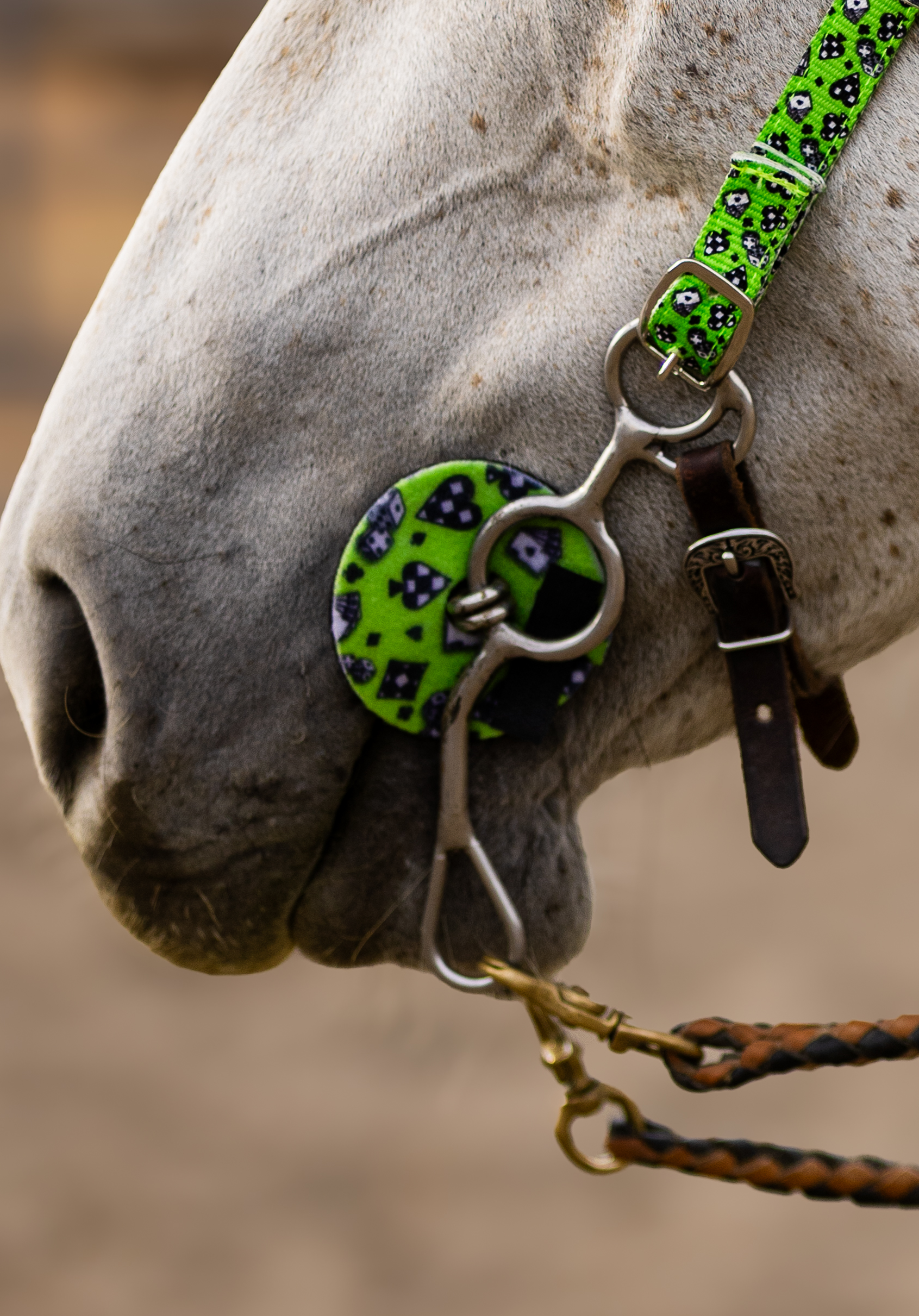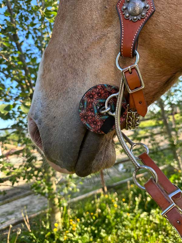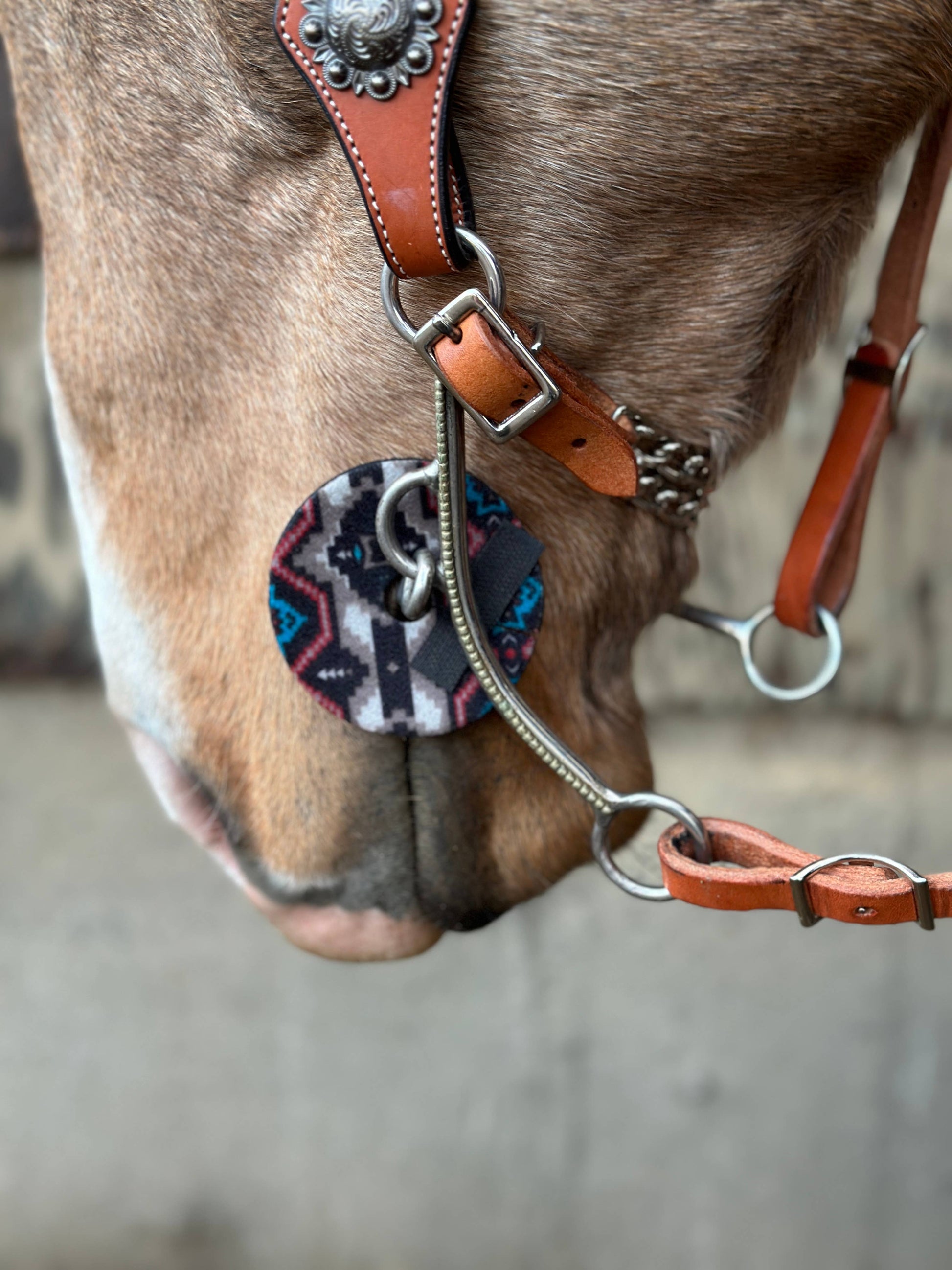 Neoprene bit guard with velcro closure. 3.25" diameter with .5" center hole for bit 5mm thick in our vibrant prints. Sold as a pair.