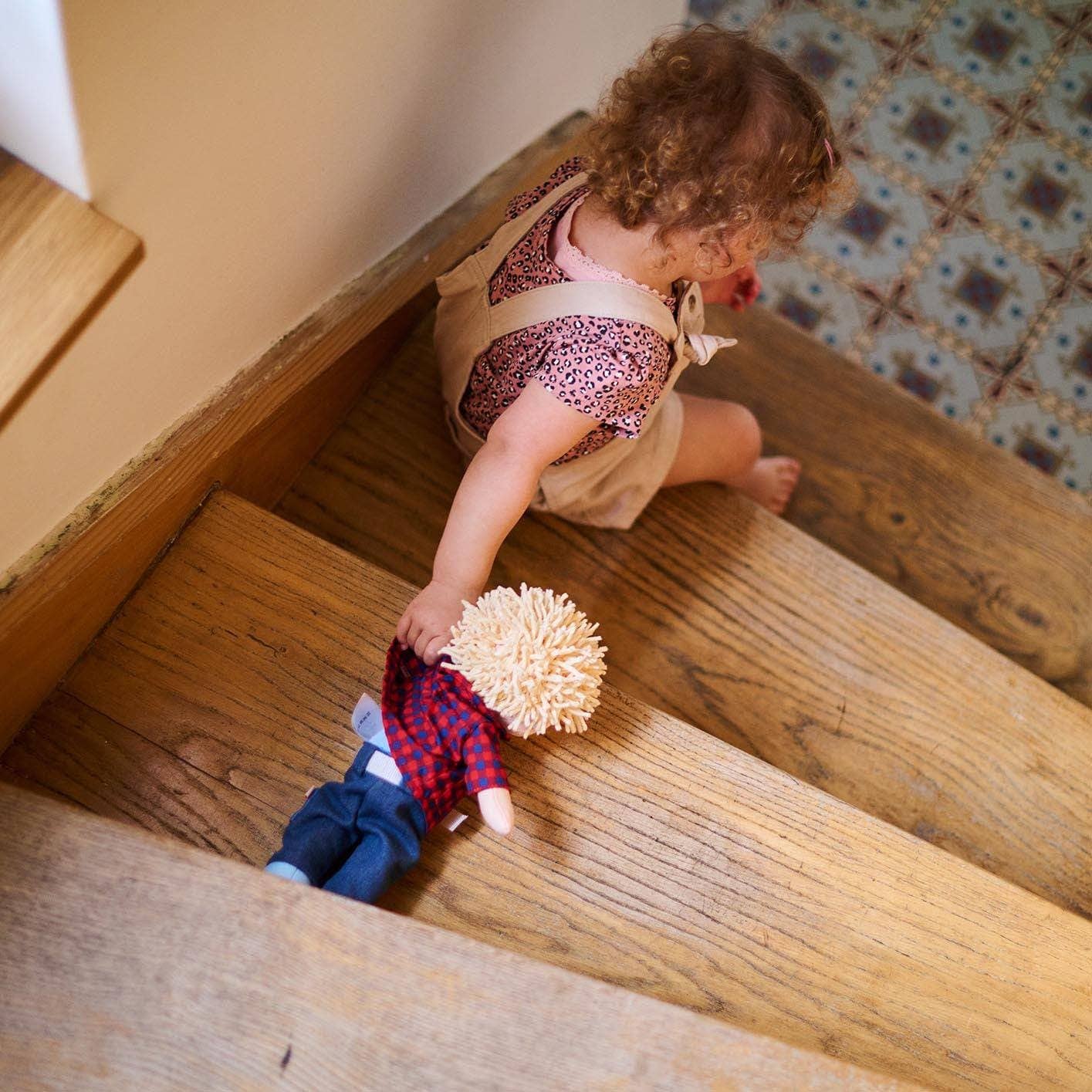 Nick is a sporty, adventurous companion ready for play, cuddles, and imaginative fun. With his vibrant blue eyes, embroidered freckles, and soft chenille hair, he’s perfect for toddlers and young children.