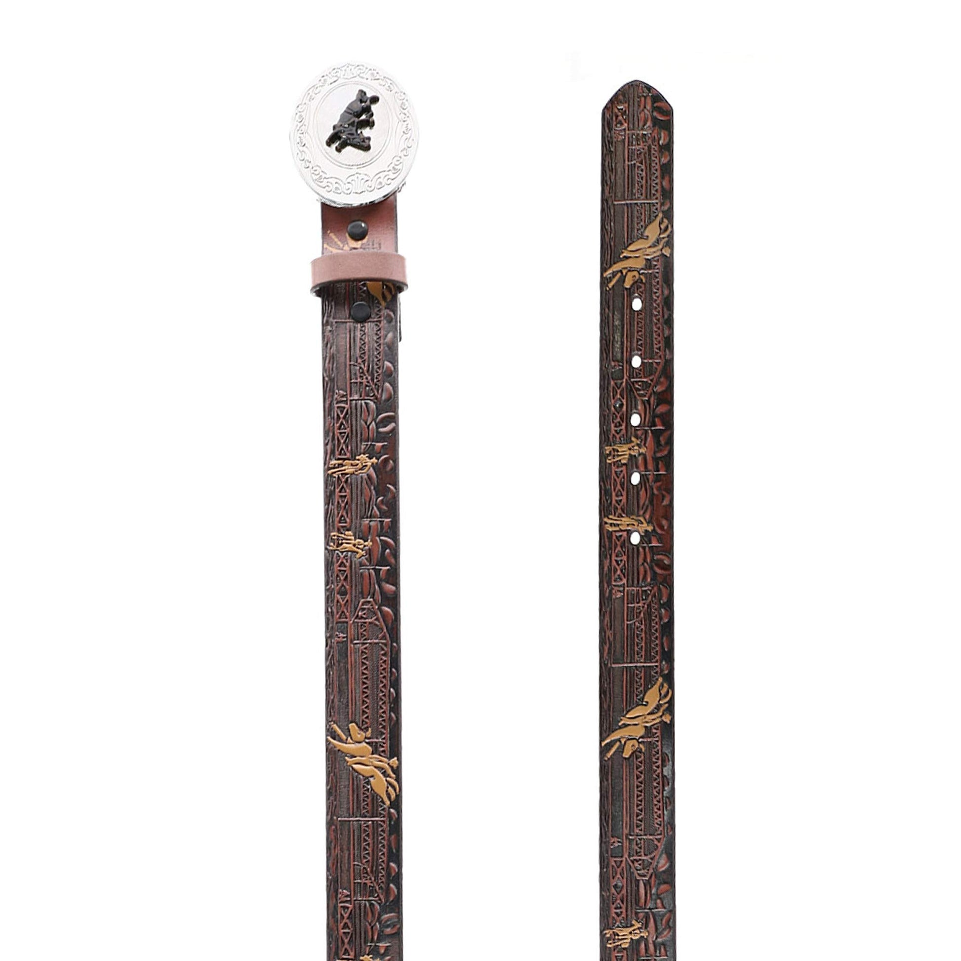 Your little buckaroo will love to wear this belt at rodeo events. Brown leather. You can remove the belt buckle.