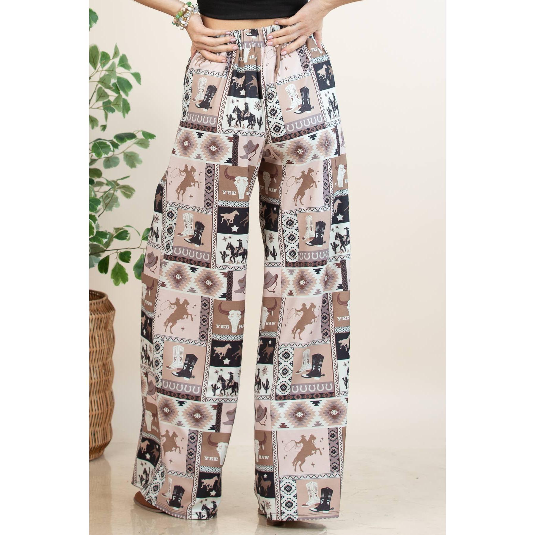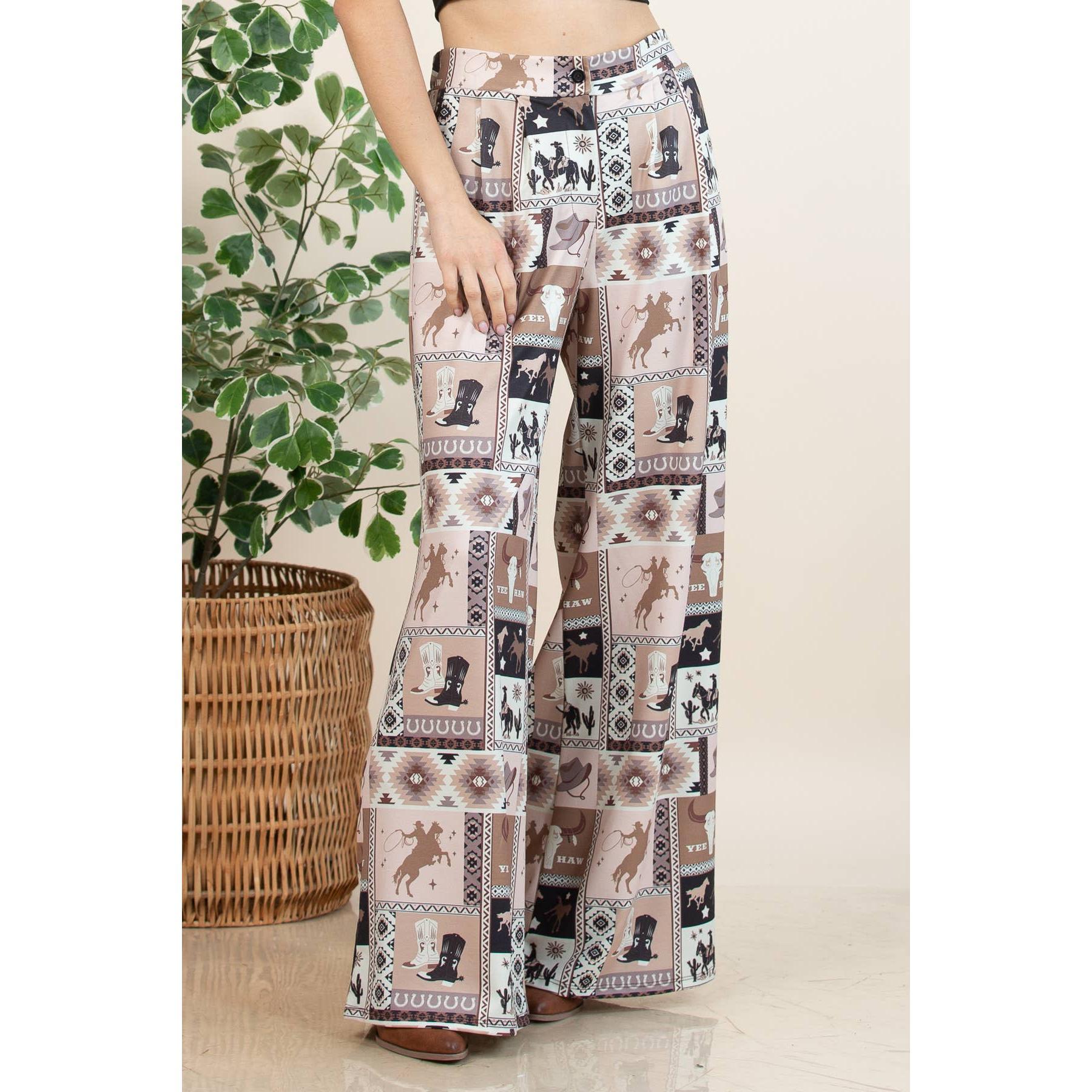 Nylon Apparel - P1261-6274-Nora Western Patch Collage Print Slack Pants