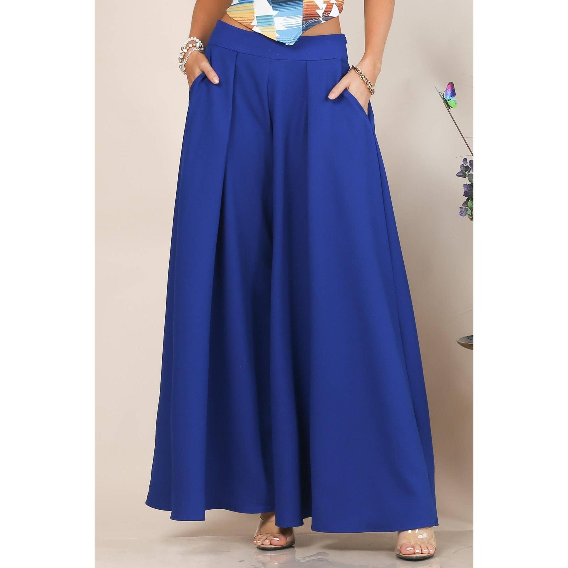 Nylon Apparel - P919-Solid-Solid Color Women Wide Palazzo Pants
