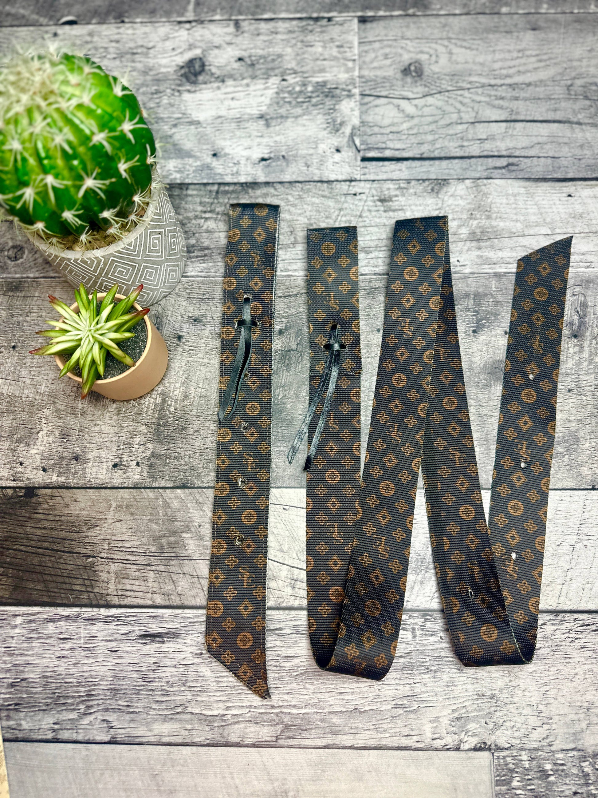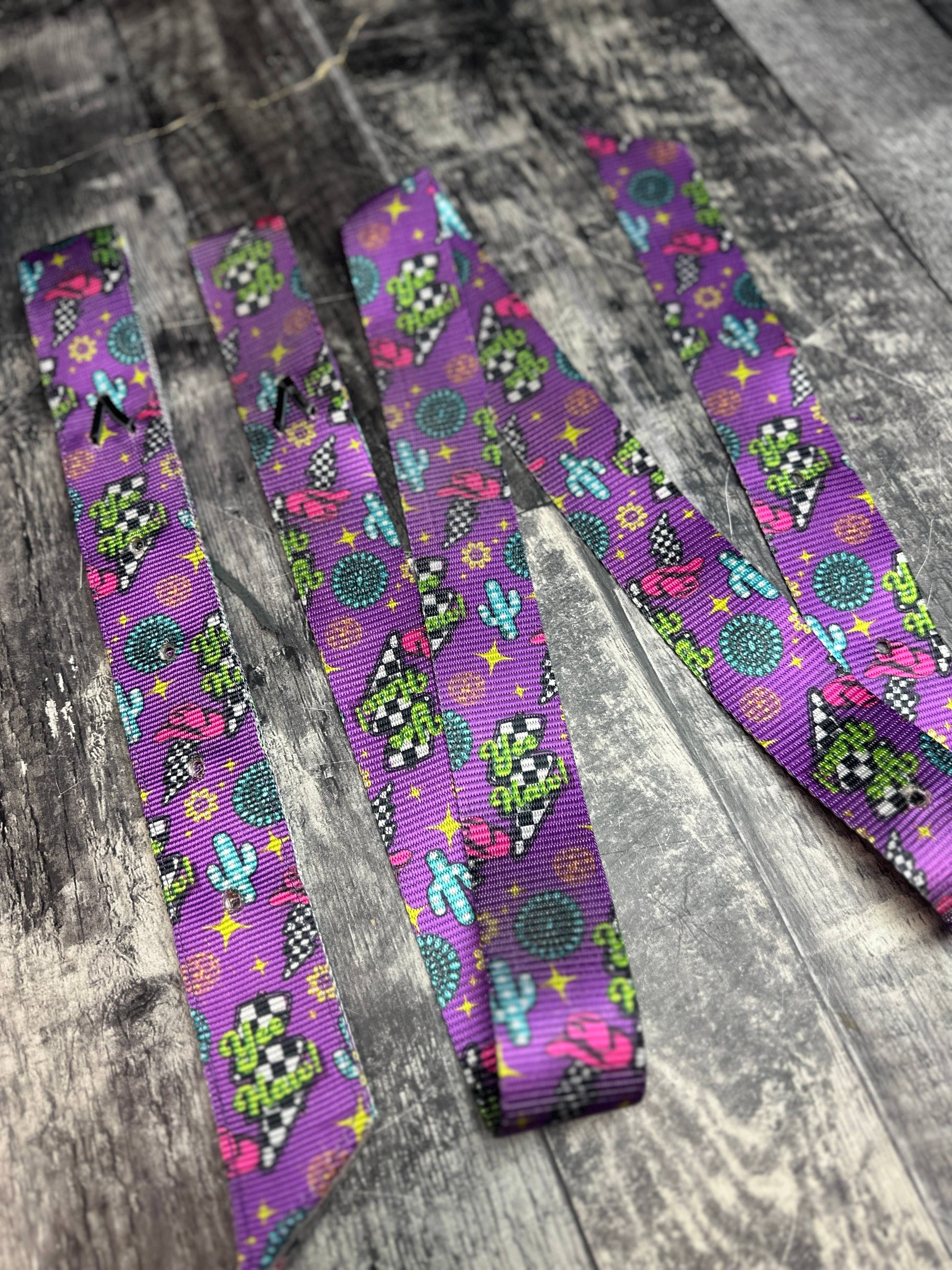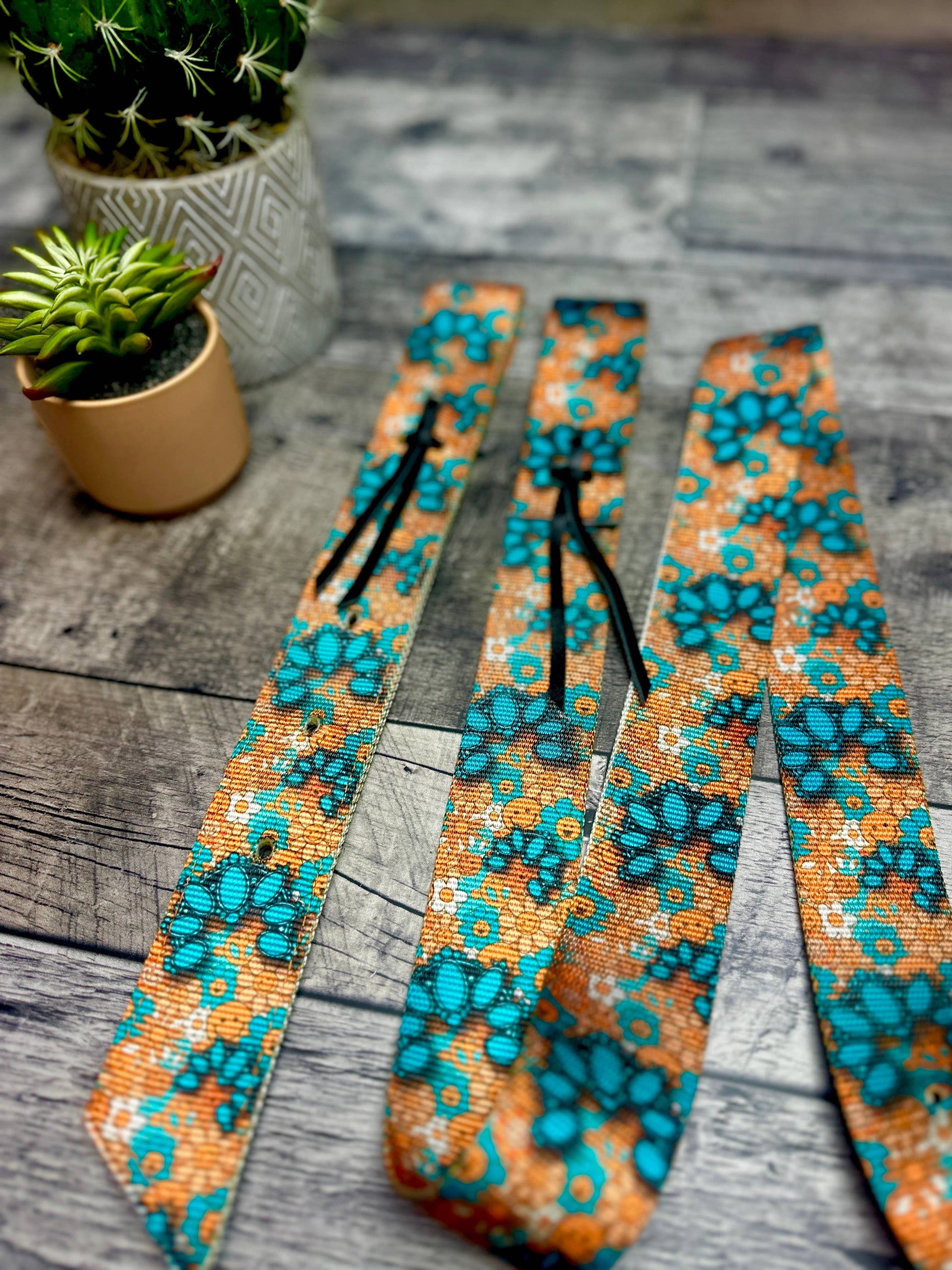 72" x 1.75" Premium Quality Nylon latigo strap. This tie strap features premium quality webbed nylon with leather tie. Measures 6'. 18" x 1.75" Premium Quality Off Billet. This billet features premium quality woven 2 ply nylon with 6 pre punched holes.