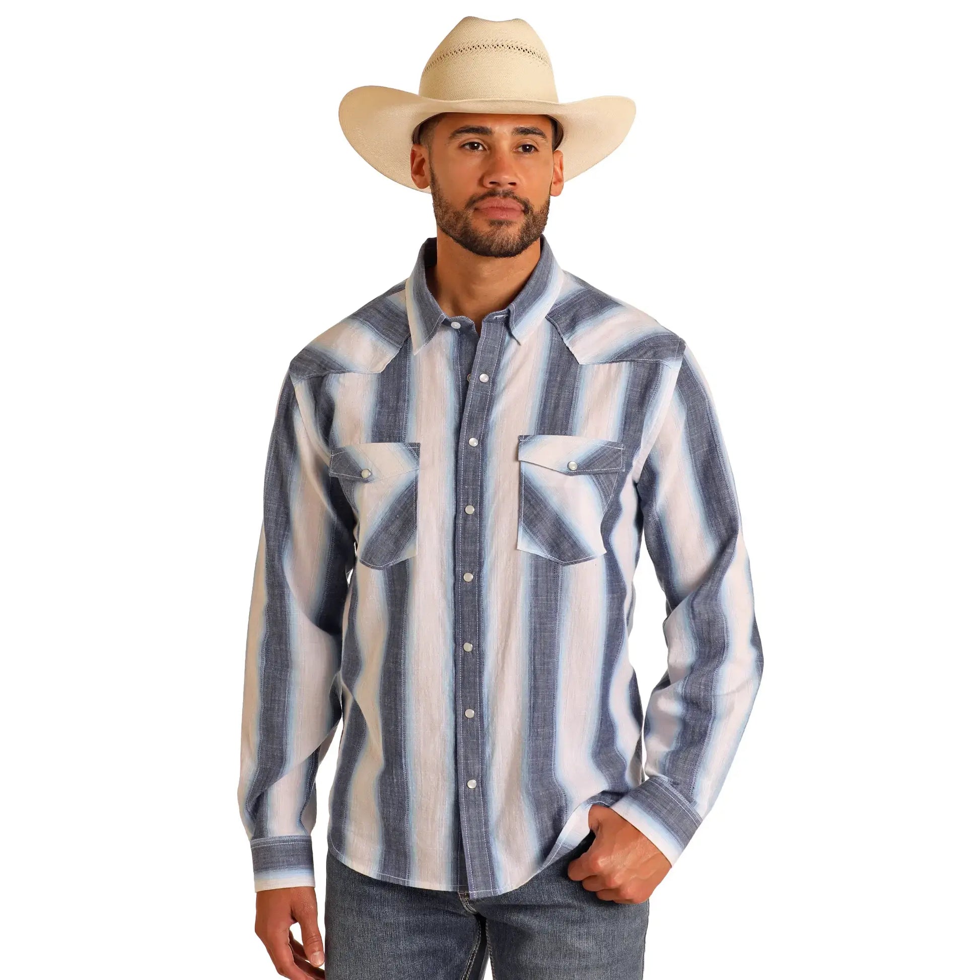 Panhandle Slim Men’s Western Shirt, Snaps, Vintage Ombré Striped PMN2S05758