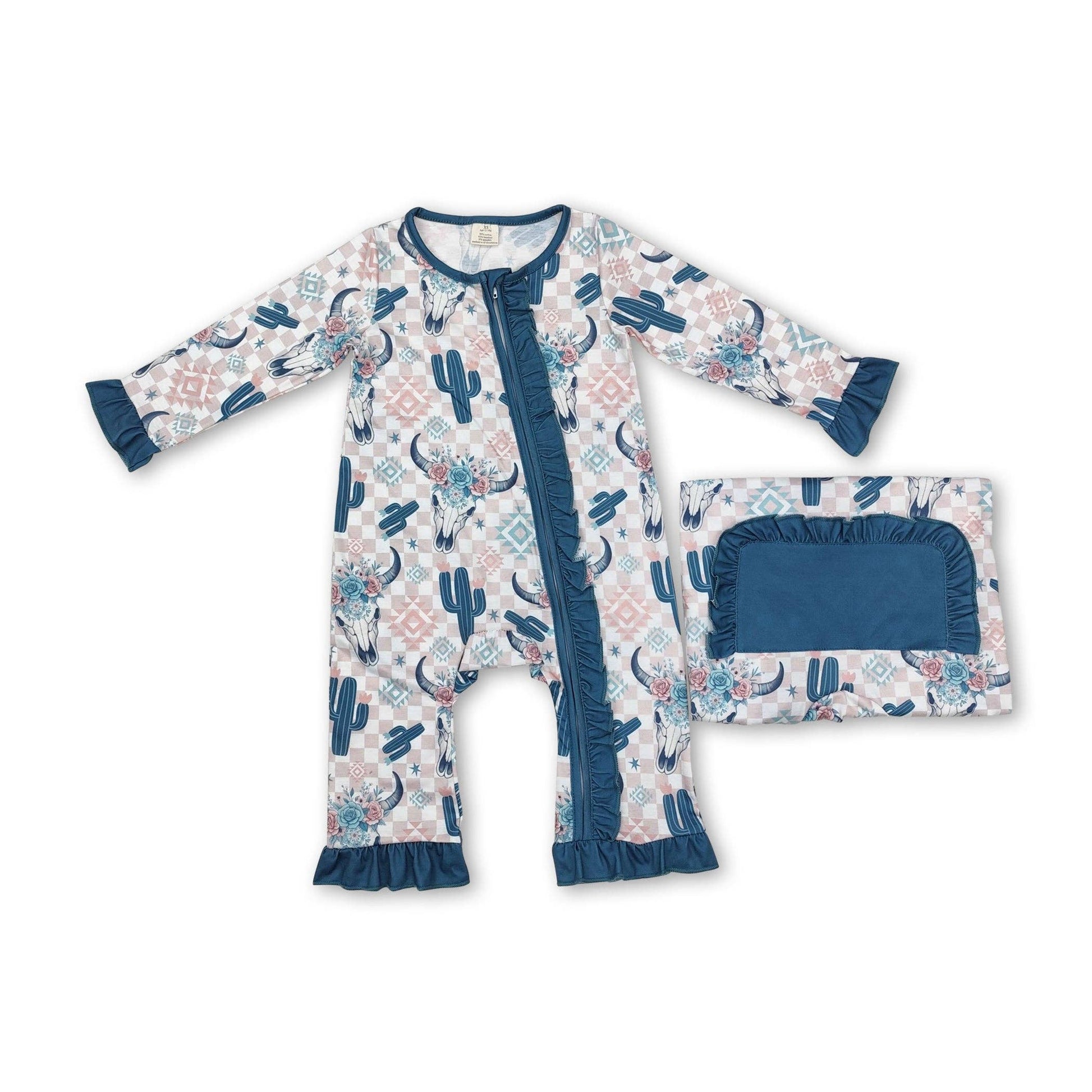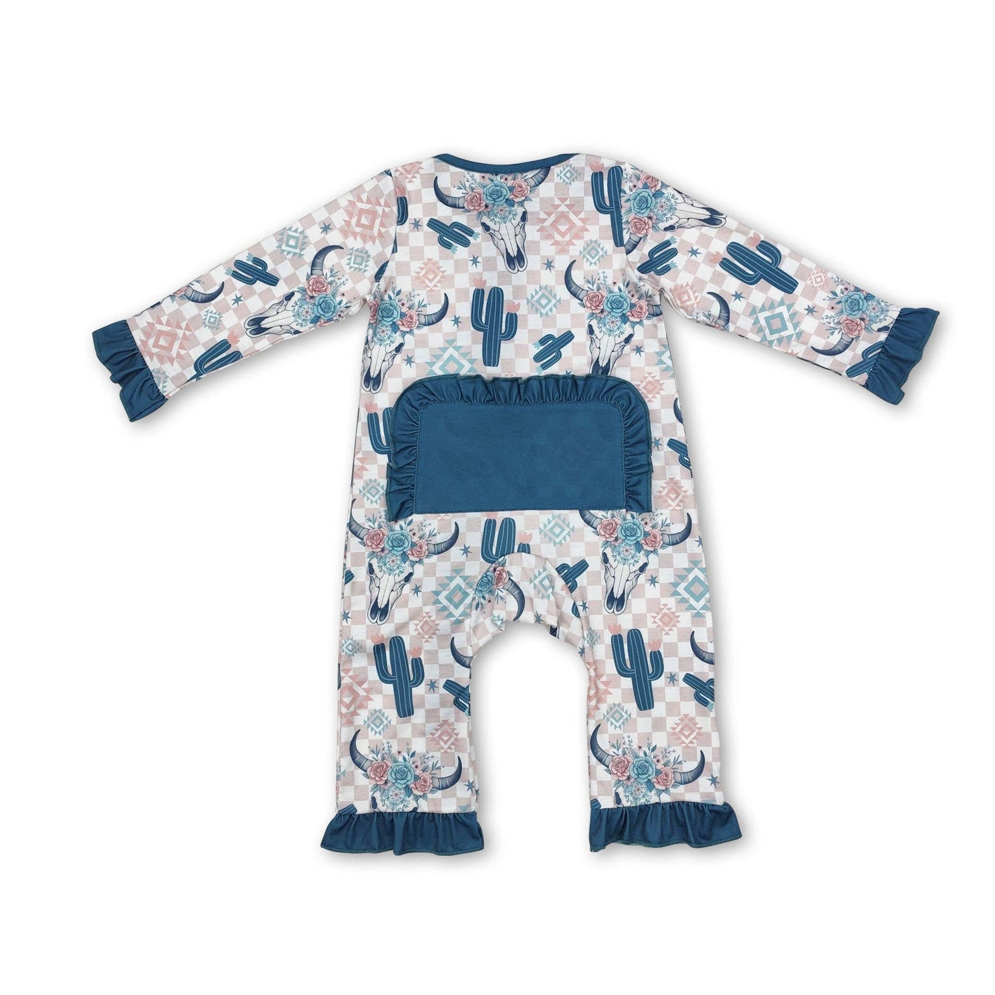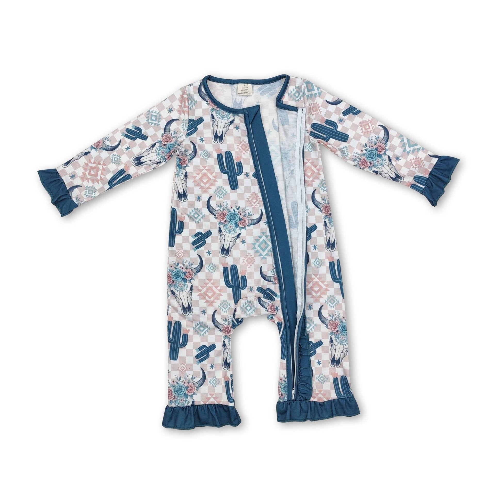 Plaid cactus bull skull floral baby girls zipper romper