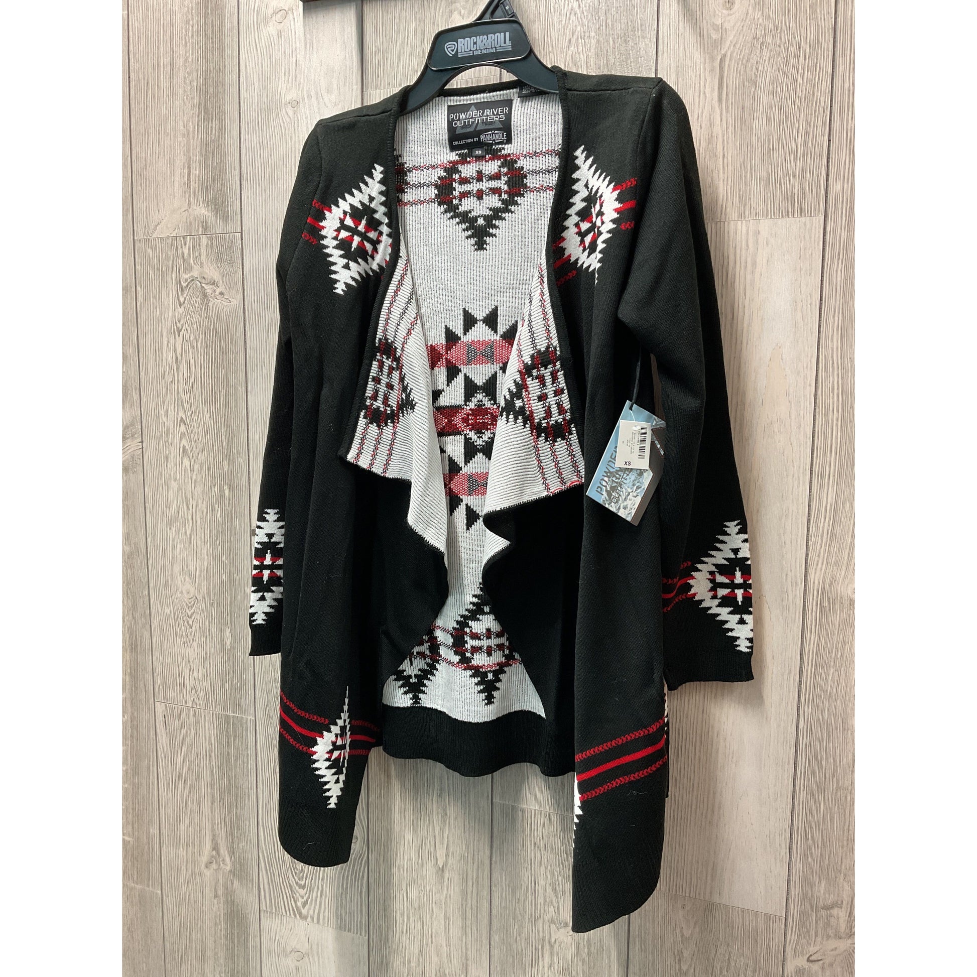 POWDER RIVER OUTFITTERS LADIES Cardigan- Black & Red Aztec 52-2705