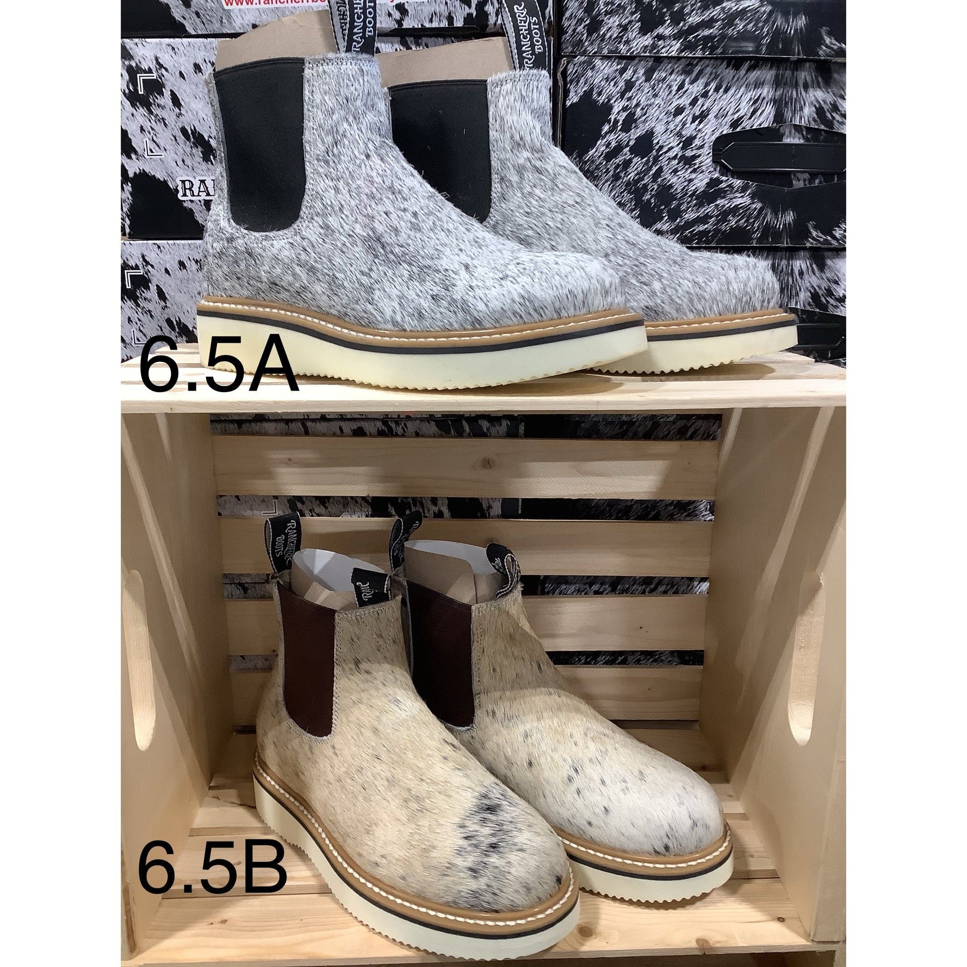 Each size of the ladies Rancherr Boots are exclusive in color. Sizes and Color combinations are never two the same, given the uniqueness of each cowhide used on these boots. Respectfully, each boot is pictures in the order of their available size(one in each).