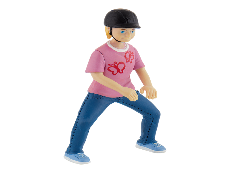 Emily is currently preparing for her first riding badge and therefore still has a lot to learn. She spends all her free time at the riding centre and at riding lessons. As she is not yet completely confident in the saddle, she is of course also wearing a riding helmet. Emily can easily mount all Bullyland horses to practise riding over poles and ground tricks. The play figure is approx. 9 cm tall and hand-painted with lots of details. Awarded the "spiel gut" seal of approval. Age: from 3 years.