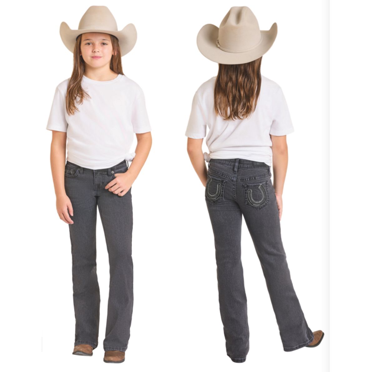 Rock & Roll Girls' Jean - Black Wash, Bootcut , Horseshoe Pocket BG4MD07395