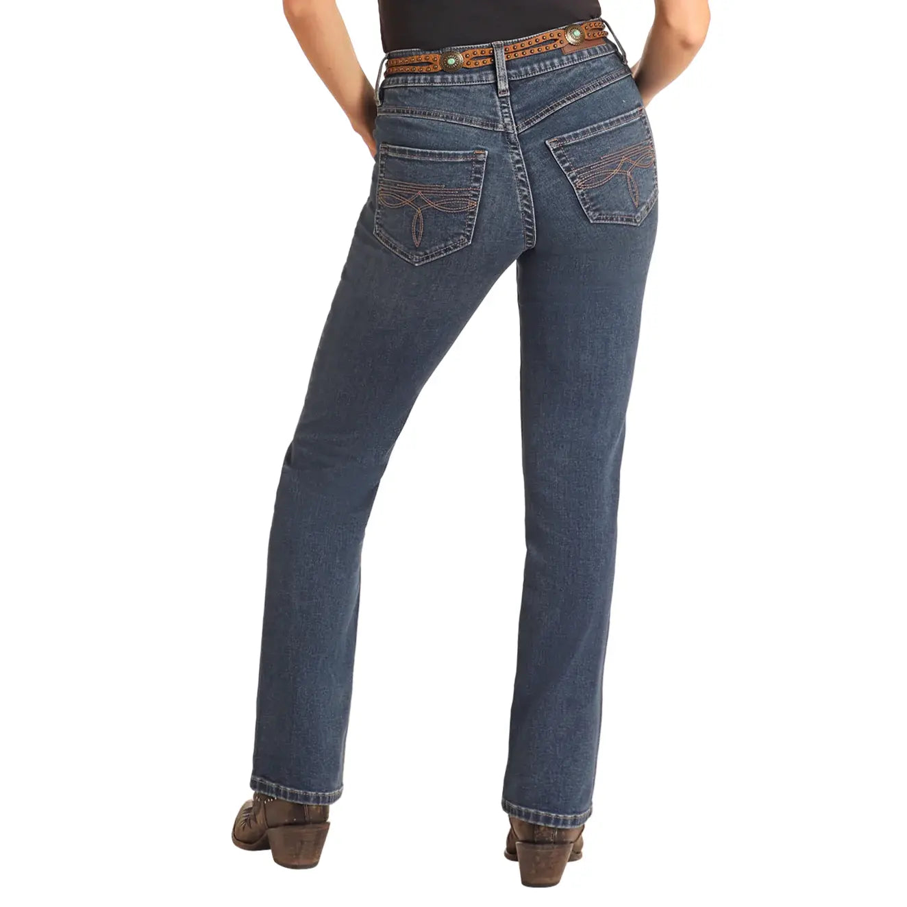 * Rock & Roll Ladies Jean, Boot-stitch Pocket, Med Wash, High Rise, Boot Cut BW4HD06384