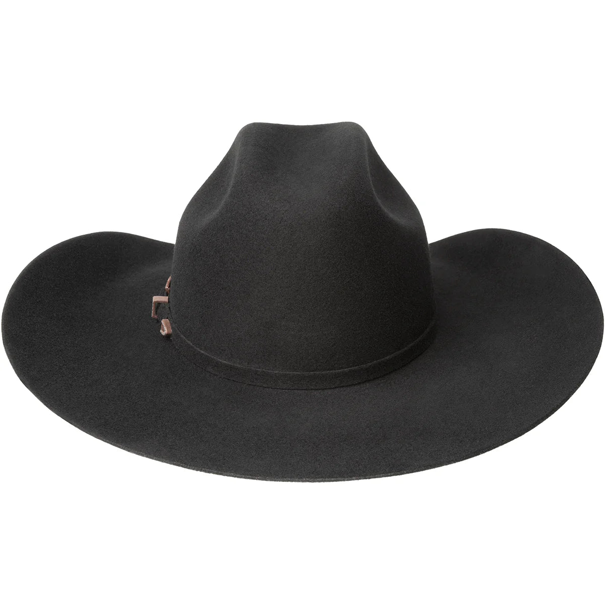 Ruddy has a 4 1/4" Cheyenne crown and a 4 1/4" brim. Made from a 4x wool and fur blend, it sports a self-felt band with a distinctive brown buckle set. Fully lined, it has a moisture-wicking sweatband for comfort and fit.