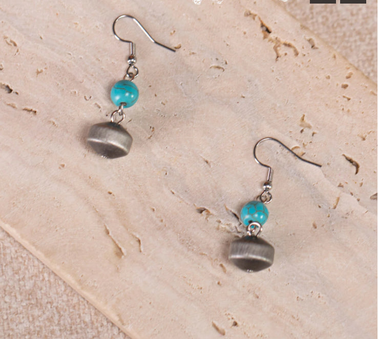 Rustic Coutoure Turquoise Beaded Layered Necklace Earrings Set RNS-1035