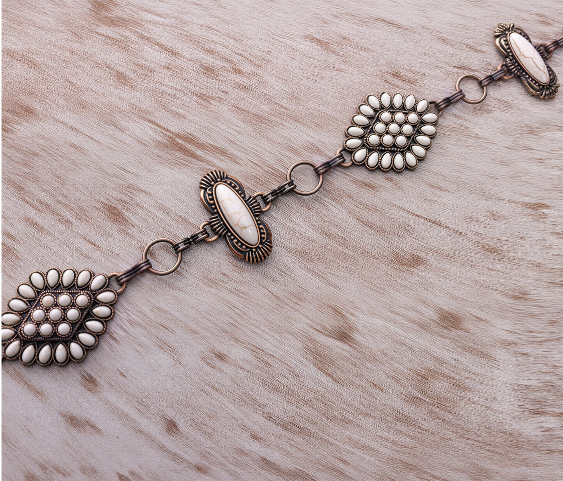 Rustic Coutoure Western Concho Link Chain Belt, White Bead RCB-03-113WT