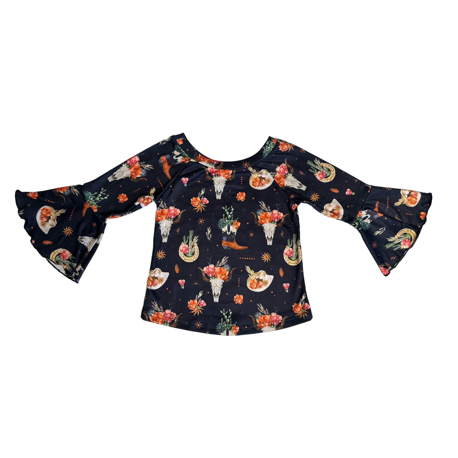 Shea Baby - Black Floral Skull Bell LS Shirt