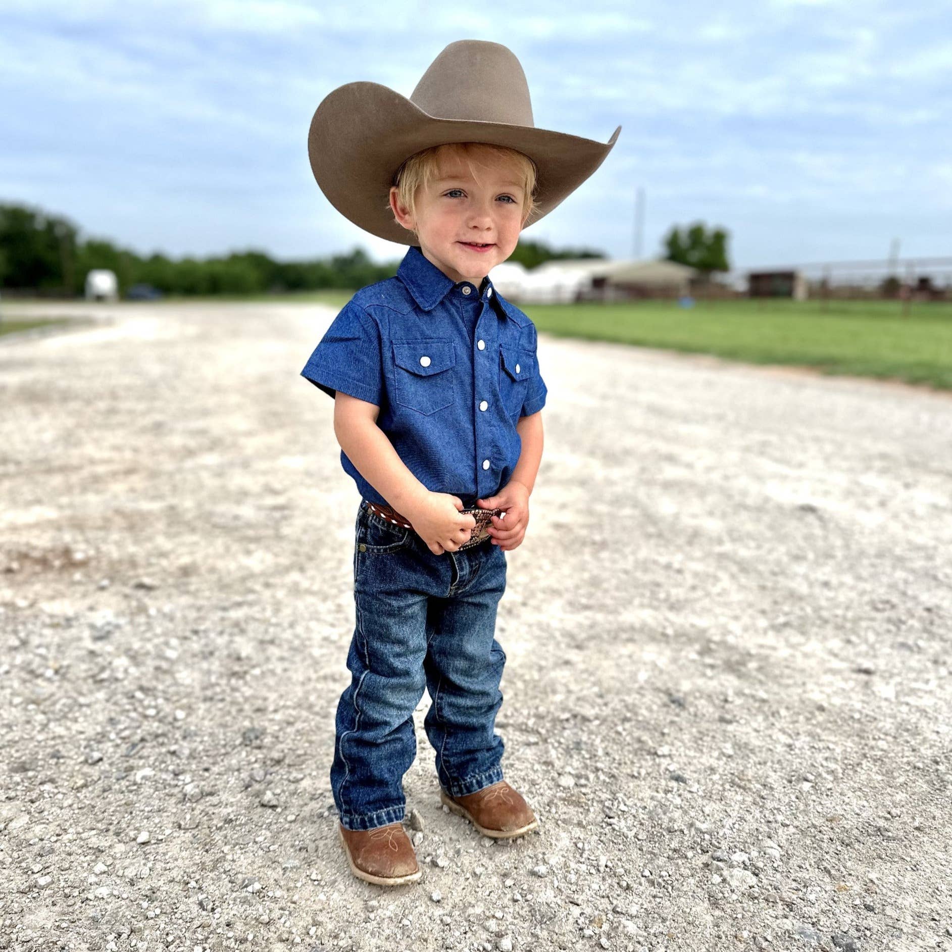 Introducing our brand new line of infant and boys' relaxed fit cowboy jeans! Crafted with the utmost quality and designed for maximum comfort, these jeans are perfect for any occasion whether it's a trip to the barn or a fancy event. With their relaxed fit and durable construction, your little one will feel confident and stylish wherever they go.