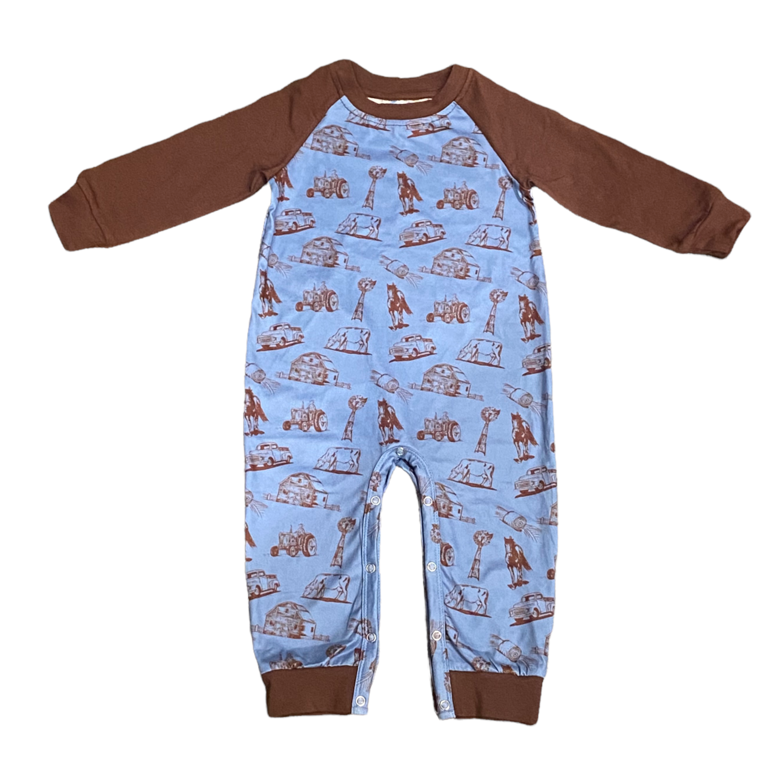 Shea Baby - Long Sleeve Boys Romper- Farm Print LSROM04