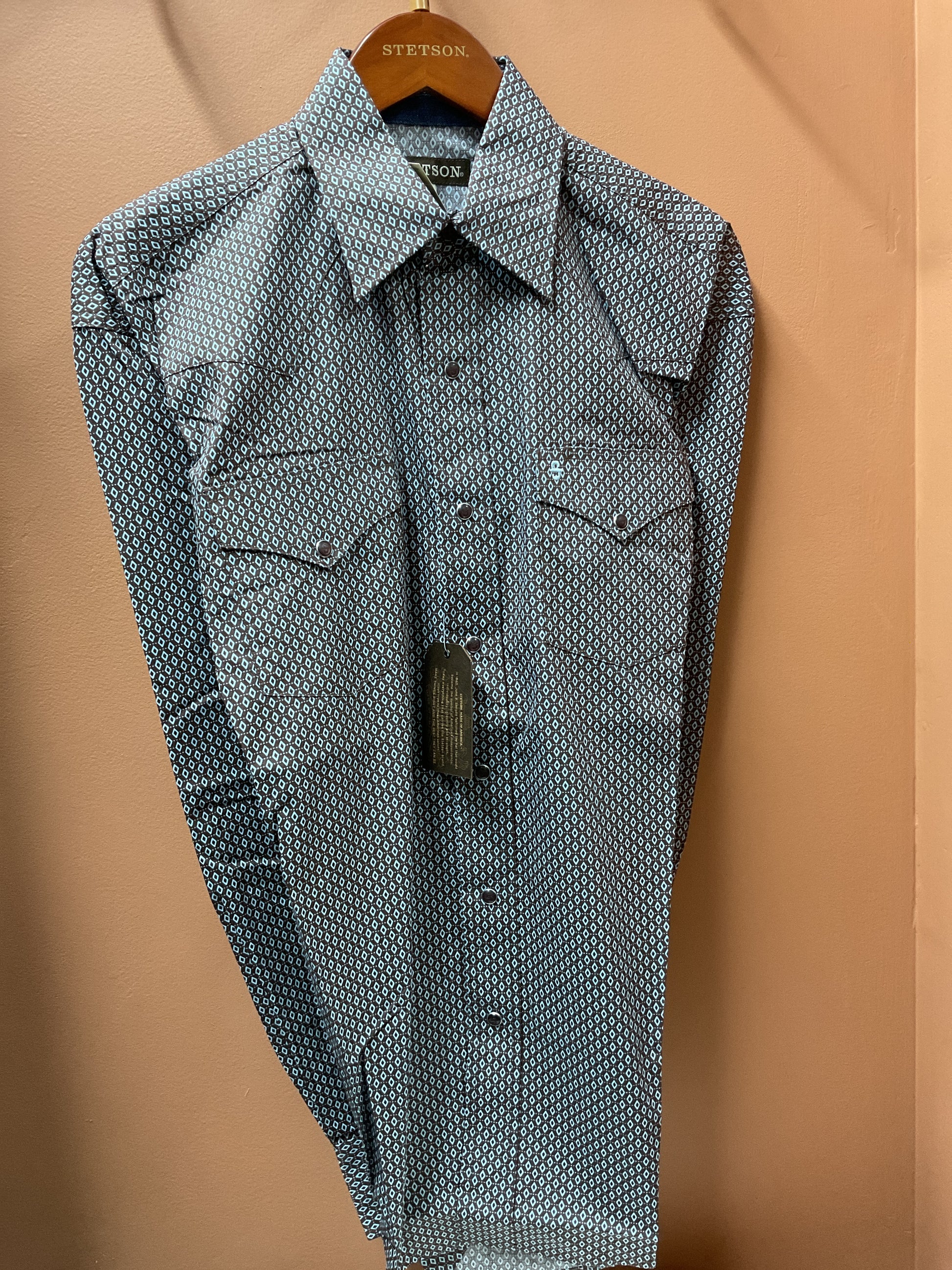 Stetson Men’s Snap Shirt, Brown, Diamond Gio Print 11-001-0425-6043