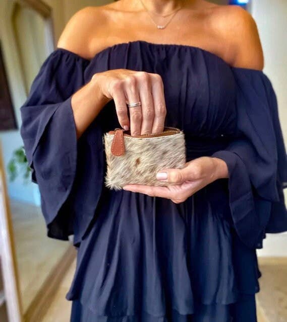 How cute are these genuine hair-on cowhide coin pouches! These make GREAT gifts! Perfect for credit cards, change, cash. Also fits your chapstick and other small items! Throw this into a larger purse, a small handbag, diaper bag, or even your gym bag to keep organized!
