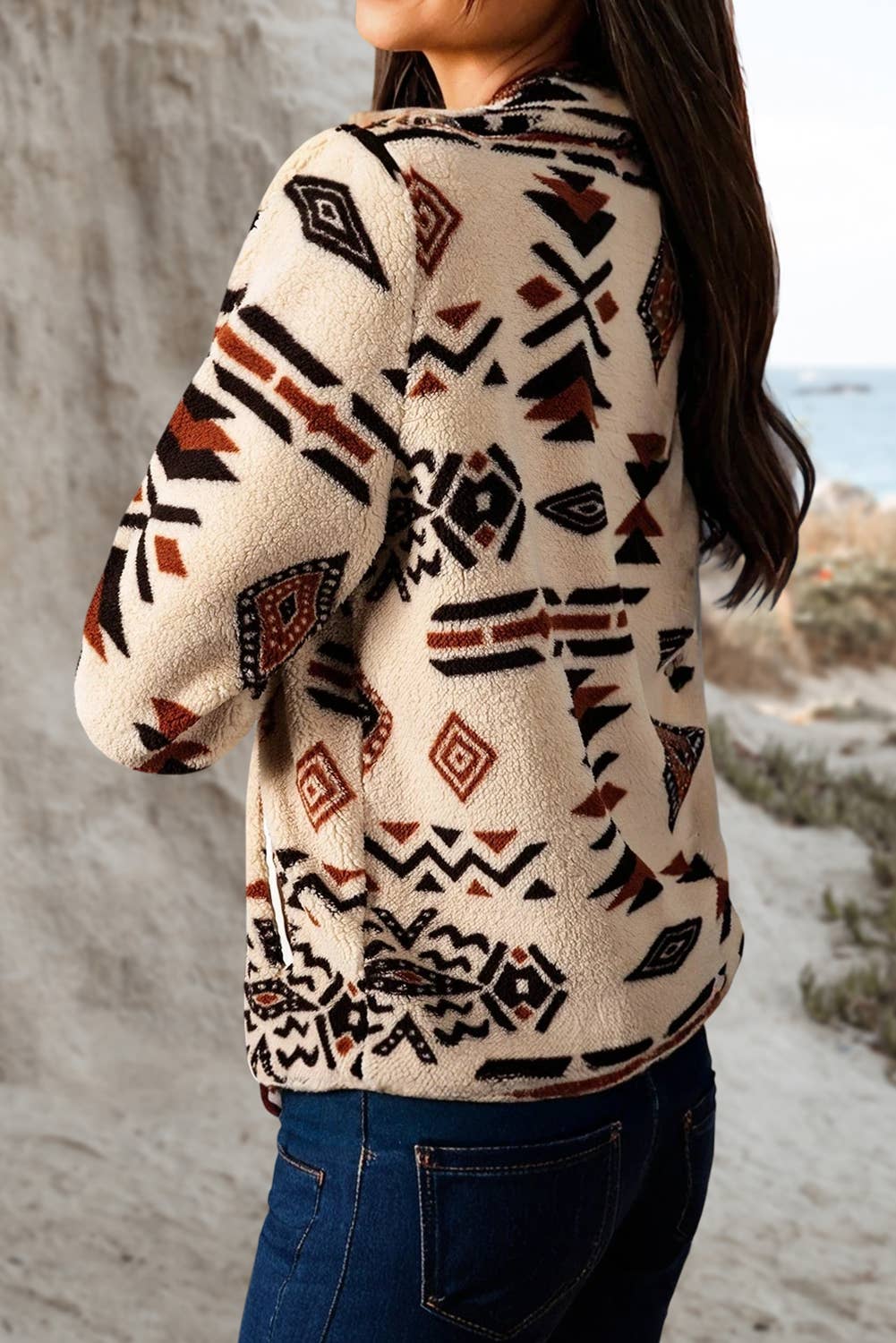 Saddle up for comfort with this Western Geometric Half Button Up Sweatshirt—where rugged style meets cozy vibes. Featuring bold geometric patterns inspired by classic Western design, this piece layers perfectly over your favorite tee or stands solo on crisp ranch days. The half-button construction lets you dial in your warmth, while the relaxed fit keeps you moving freely whether you're working the land or heading to town. A wardrobe essential that proves ranch wear doesn't have to sacrifice style.