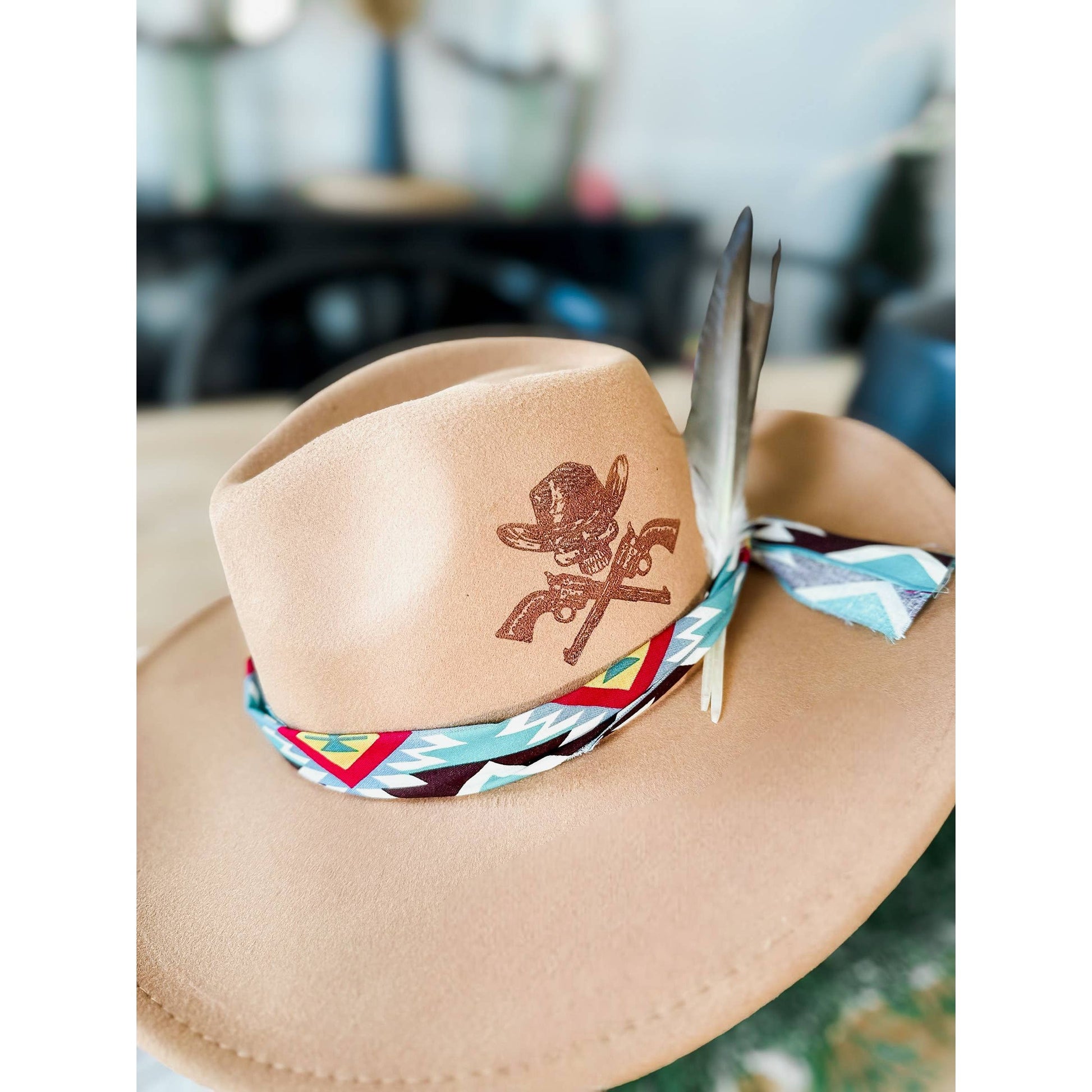 Wild Indigo - Western Burned Hat Cowboy Skull Cross Design
