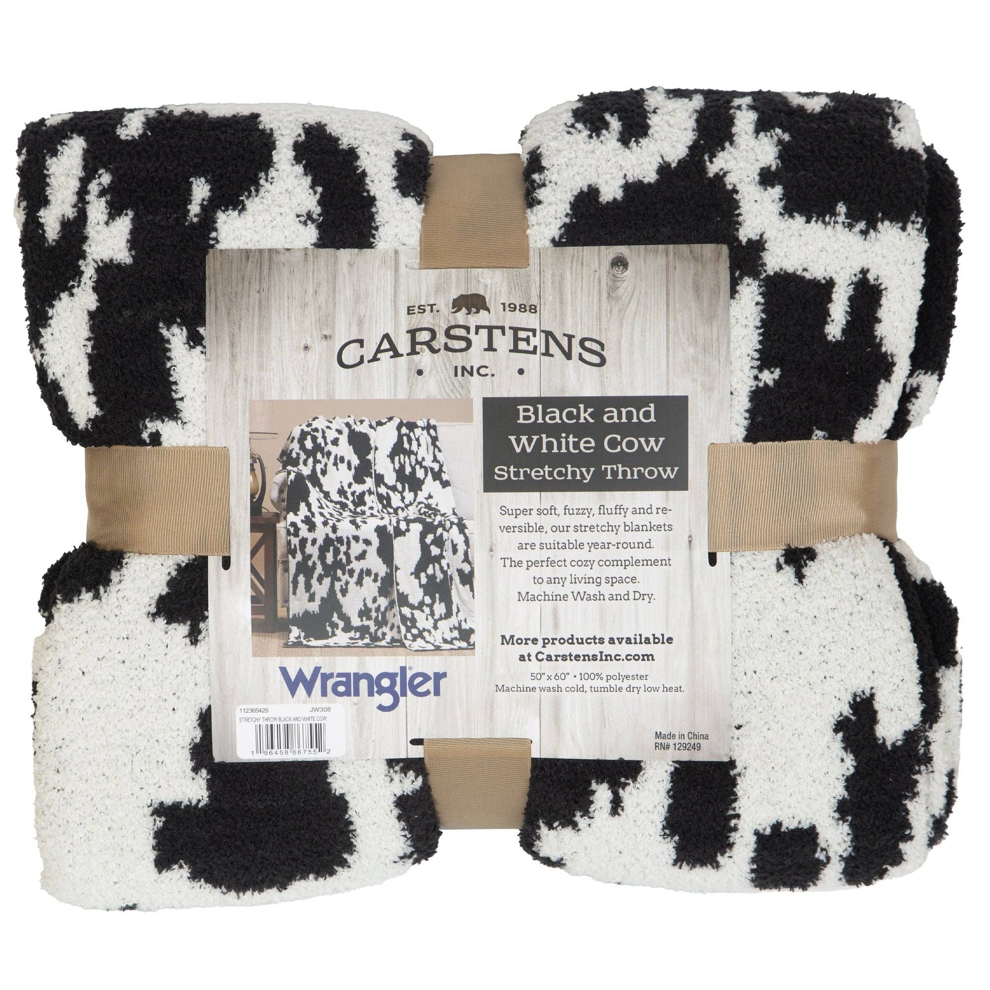 Wrangler Black & White Cowhide Stretchy Throw Blanket