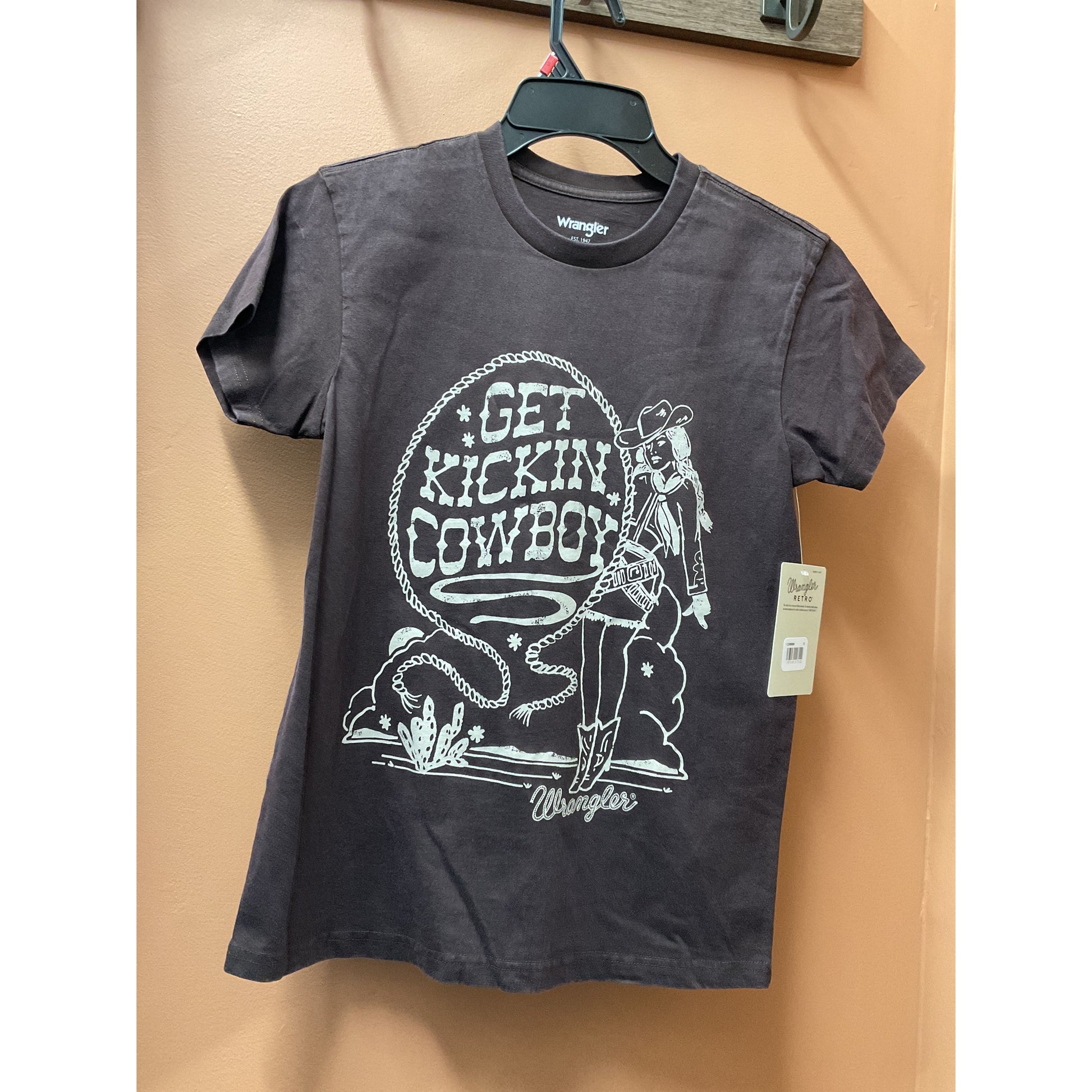 Long Live Cowboys®. Our Women's Wrangler Retro® Western Graphic Boyfriend Tee comes with a retro-inspired graphic that celebrates our Western heritage and those cowboys we love. It's crafted from a buttery soft cotton blend for comfort and cut with a boyfriend fit for a slightly oversized look that feels lived in and well-loved, no borrowing from the boys required.