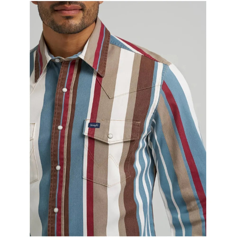 Can’t call it a comeback when the Wrangler® Brushpopper is just warming up. This vintage-inspired Western snap work shirt kicks any outfit into next gear with its bold and colorful stripes, and no two shirts are exactly alike. Crafted from cotton and cut in a regular fit, it offers comfort from season to season. Plus, you’ll have all those iconic details, including Western yokes from front to back, chest pockets with the signature ‘W’ embroidery, and pearl snaps for easy layering when you feel like it.