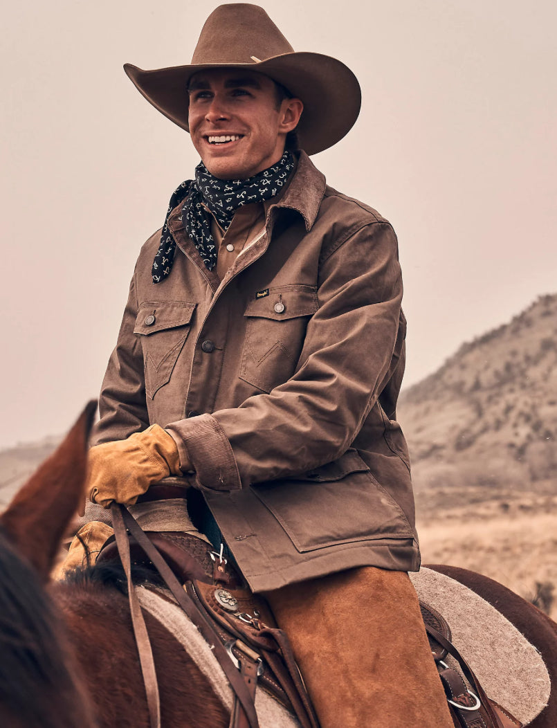 Cold weather and long days can't keep our Western Lined Canvas Barn Coat from helping you take care of every item on your to-do list. It's made of waxed cotton canvas for durability. It comes with a quilted flannel lining to keep you warm without weighing you down. You'll also have six total pockets for your essentials, a corduroy collar and cuff for extra comfort, Western styling, button front, and a relaxed fit.