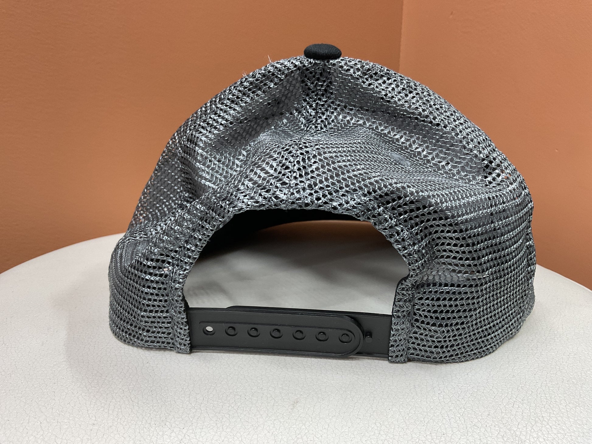 Top off your classic cowboy look with a grey and black trucker cap by WRANGLER. This mid-profile cap features 6-panel construction, a woven skull and logo patch, and a secure back snap closure.