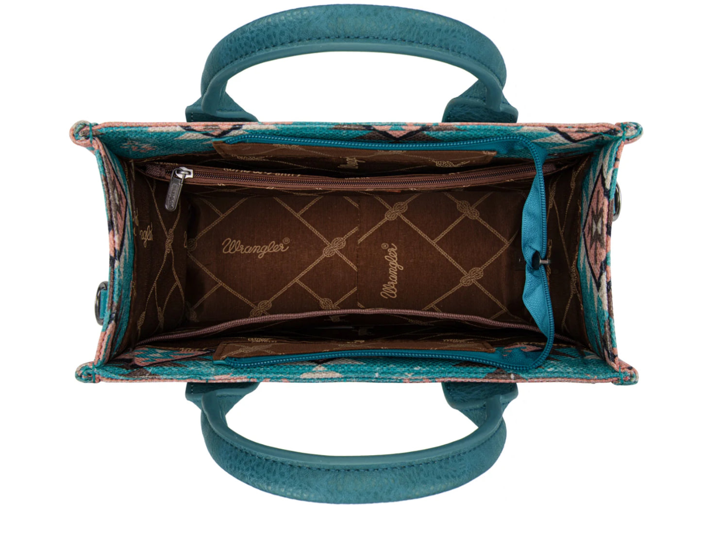 Wrangler Southwestern Print Small Canvas Tote/Crossbody - Turquoise WG2209- 8120STQ