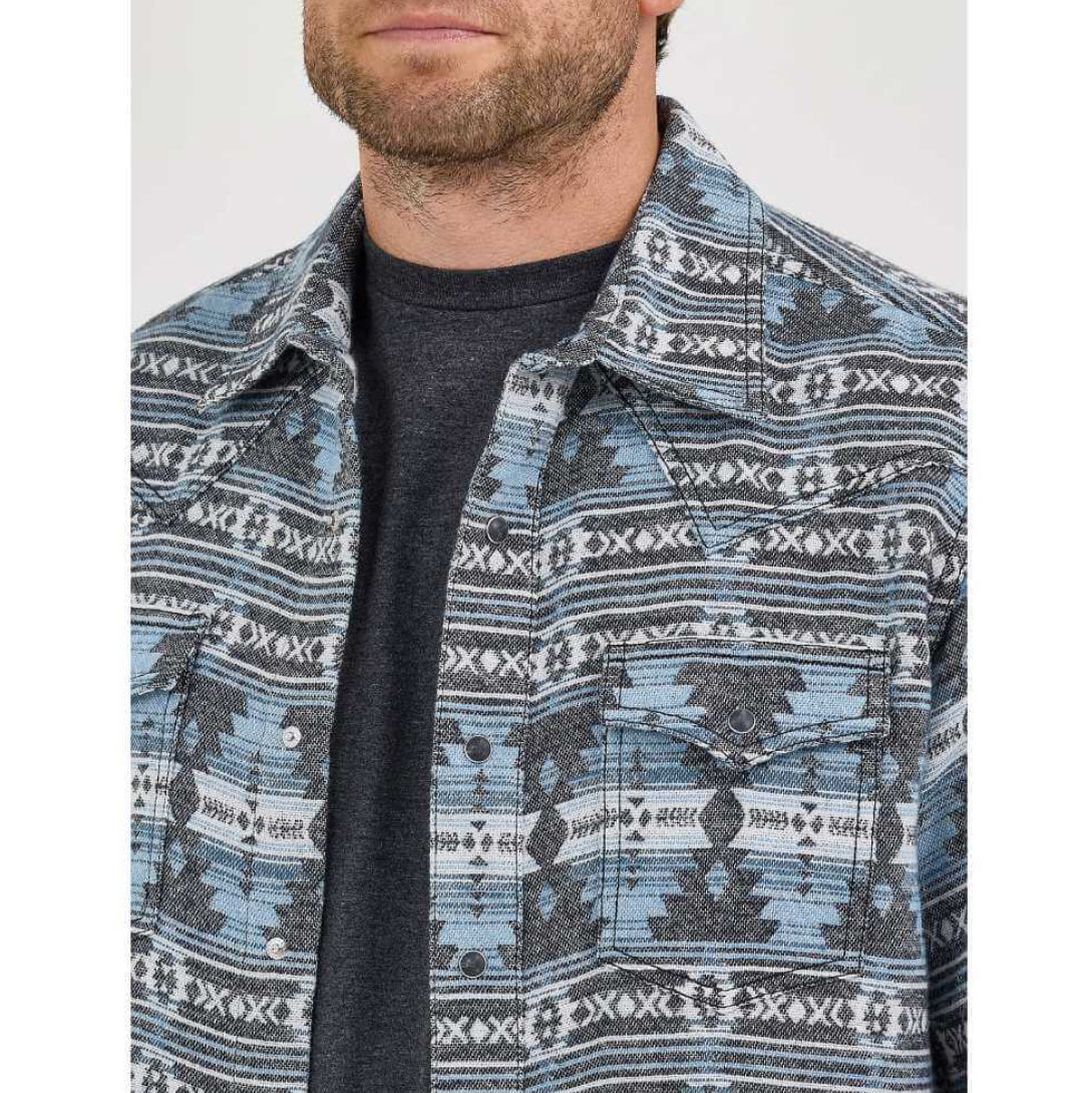 Wrangler Mens Retro® Premium Jacquard Snap Shirt Jacket Baby Blue - 112368216